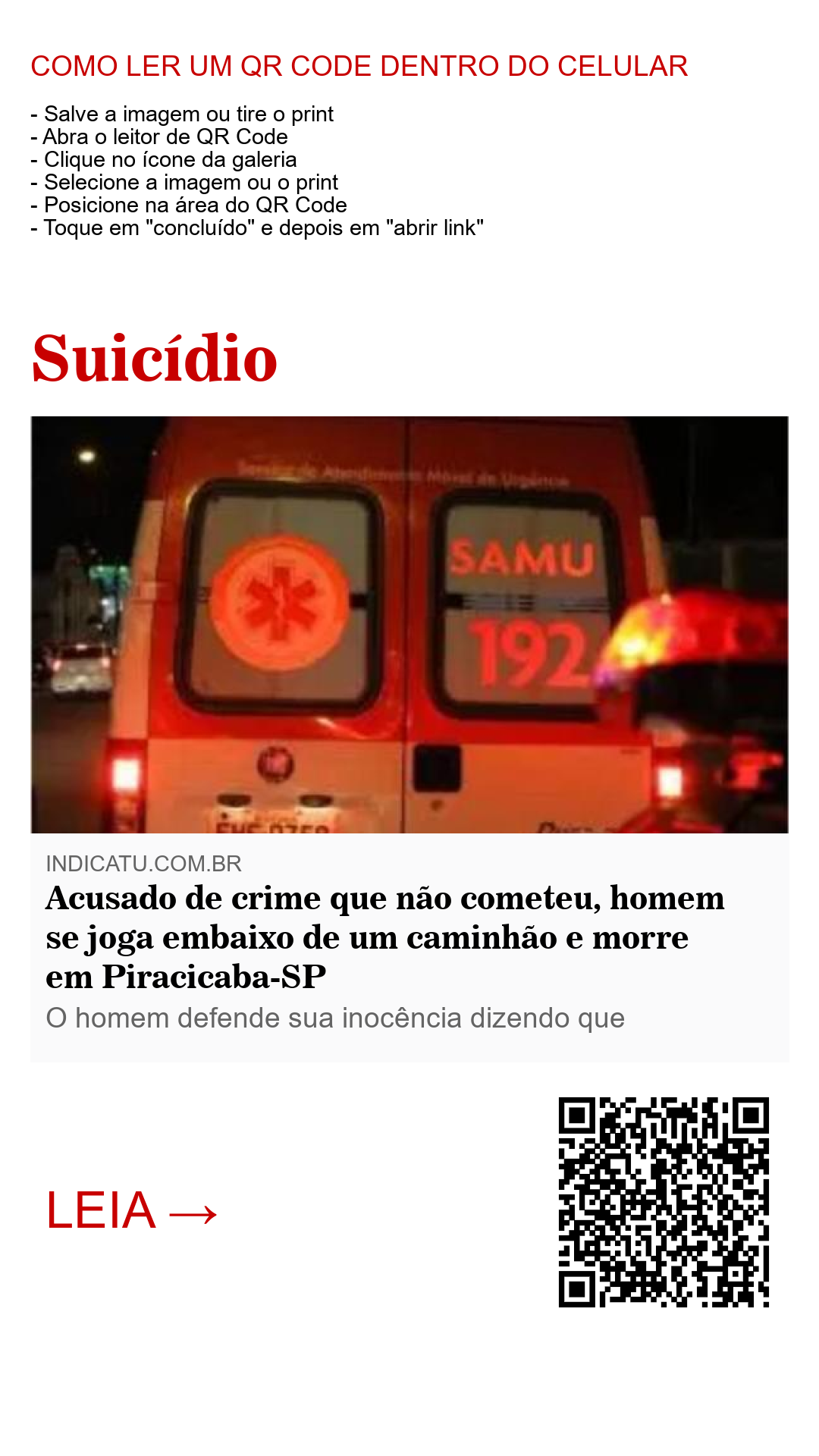 Um homem de 40 anos de idade morreu por volta das 20:00h do ultimo Domingo em Piracicaba, interior paulista, após se jogar embaixo de um caminhaõ na avenida Luiz de Queiroz próximo ao distrito de Tupi.