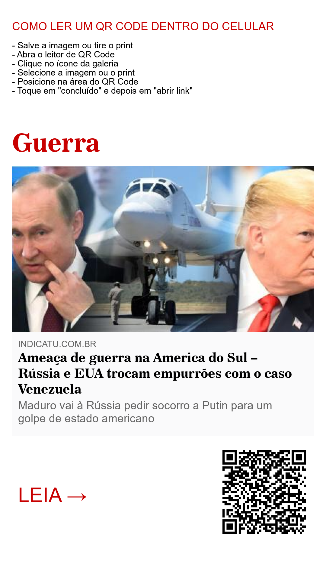 Bolsonaro incitou a guerra com seus discursos de ódio e ela deu os ares da graça no continente sul-americano sem nenhum problema. O despertar da fúria de dois gigantes nucleares, Rússia e EUA, nos quintais tupiniquins, é uma evidência clara de que não existem países amigos; apenas troca de interesses e favores. O intolerante Putin enviou à Venezuela dois aviões bombardeiros nucleares com poder de destruição altamente letais, causando alvoroço nos países vizinhos, sobretudo o Brasil, país quintal dos EUA, a nação maçônica estereotipada por ser sugadora dos recursos de países como o Brasil, impedido de alcançar o desenvolvimento para bancar o luxo e a boa vida norte americana.
