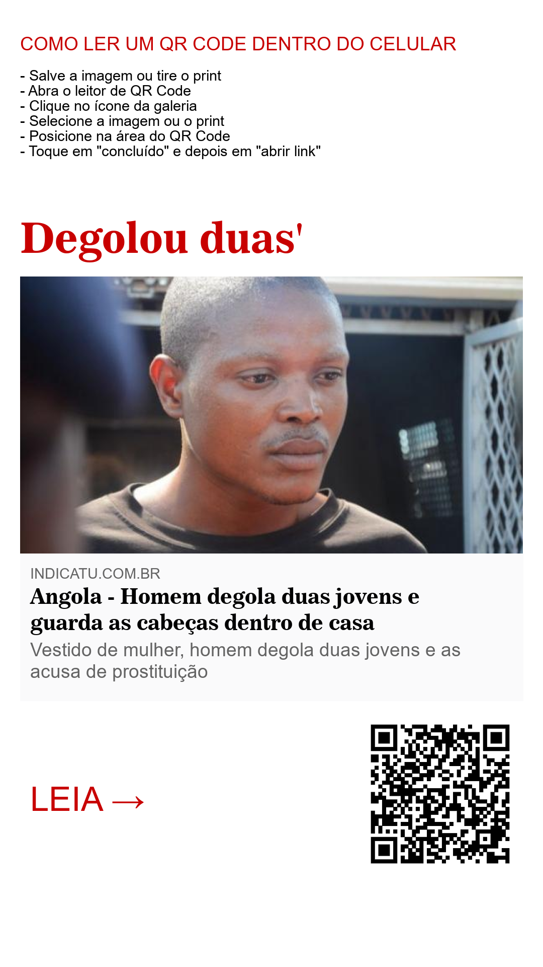 “ Matei no bairro Paz junto a antena da UNITEL, frente a igreja Bom-Deus, porque estavam a fazer prostituição e acompanhei o movimento e depois segui a vítima até ao local da morte”, confessou.