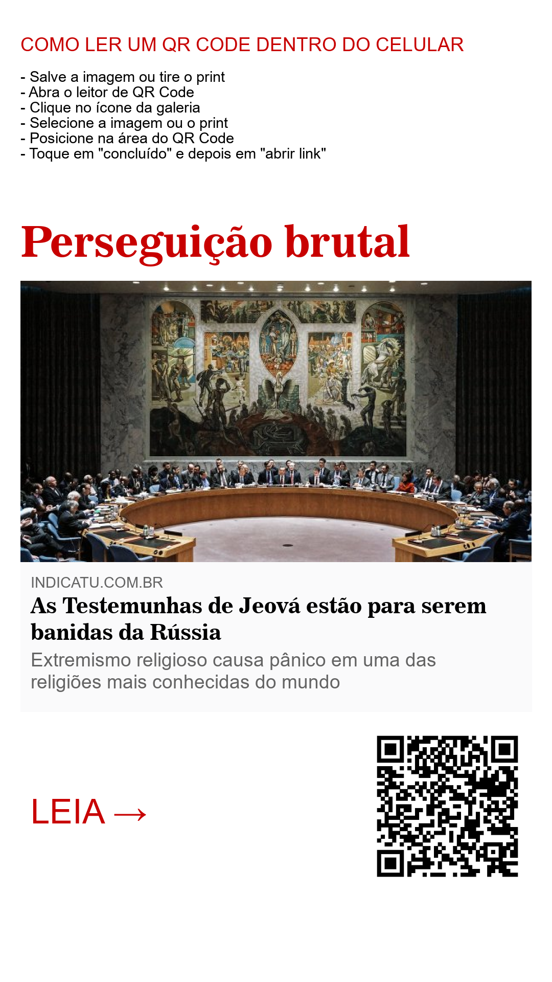 E você, o que acha? As Testemunhas de Jeová devem ser banidas da Rússia? Participe da nossa enquete, deixe o seu voto e o seu comentário sobre esse assunto.