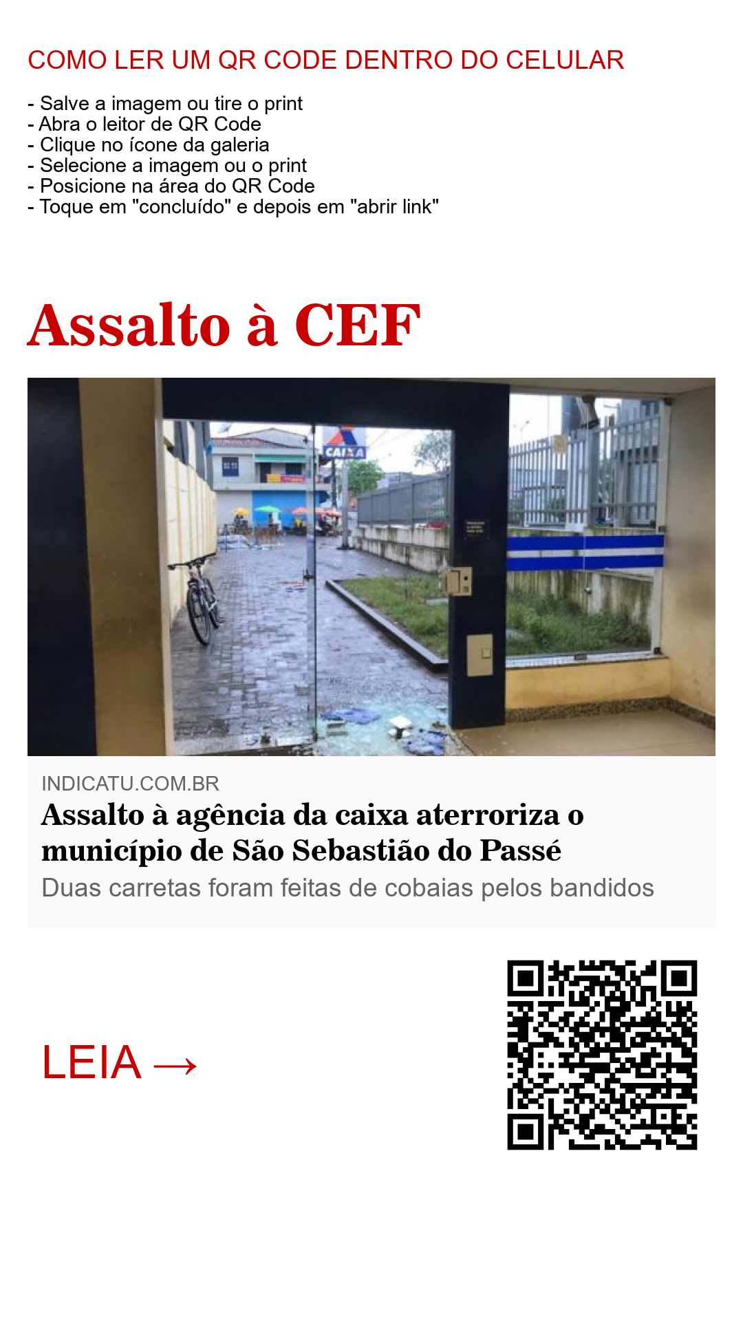 A polícia federal já começou as investigações. Os homens usavam luvas e capuz durante o assalto. A população de São Sebastião do Passé se diz aterrorizada e sem segurança depois deste episódio histórico na pacata cidade do interior baiano.