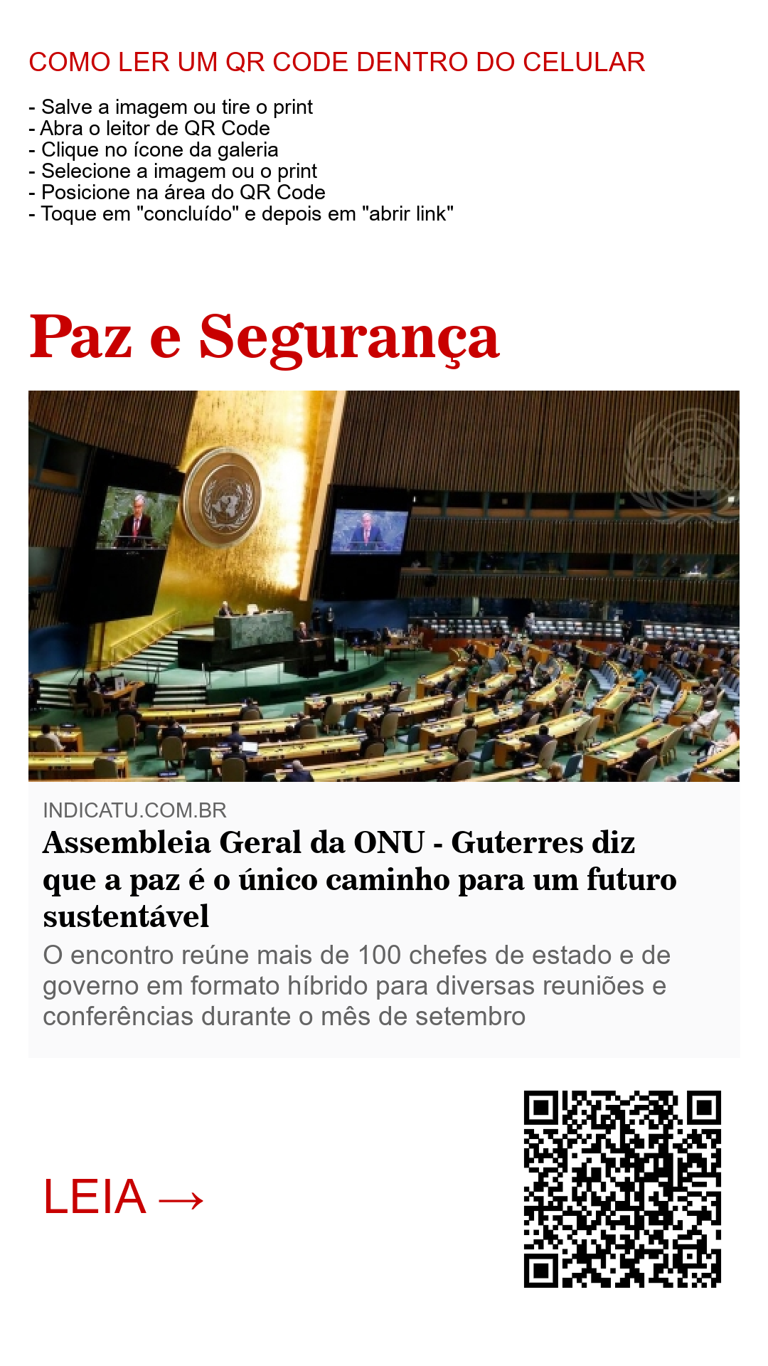 Começa nesta terça-feira (14) a 76ª Assembleia Geral da ONU que, pela primeira vez na história, será realizada em formato híbrido - virtual e presencial. O tema para este ano é: “Construindo resiliência por meio da esperança – para se recuperar da covid-19, construir de forma sustentável, responder às necessidades do planeta, respeitar os direitos das pessoas e revitalizar as Nações Unidas”.