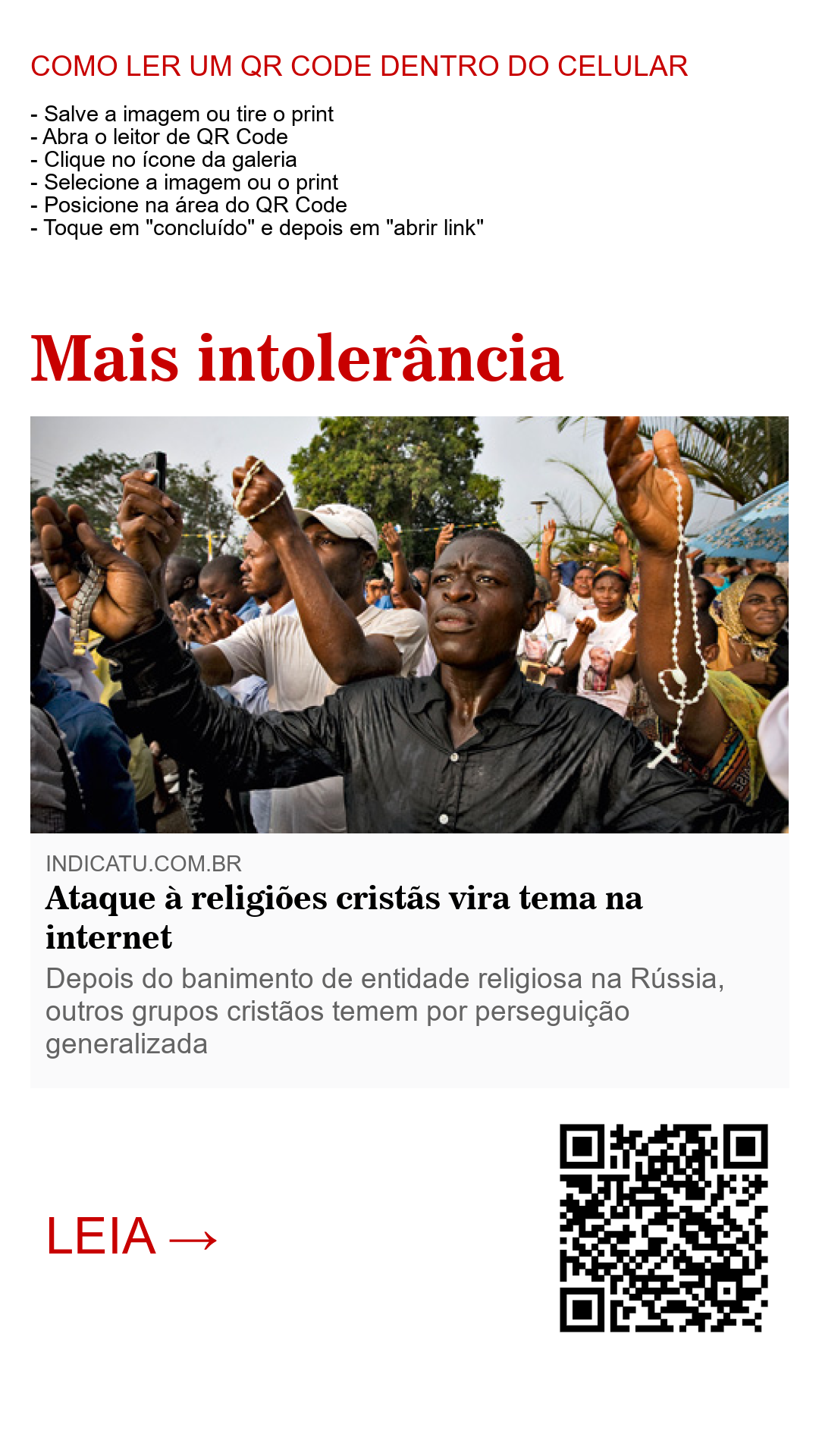 Uma onda de ataque às religiões teve seu precedente acionado pela Rússia com a proscrição de entidade religiosa pacífica. A situação já é de pânico em outros grupos cristãos. Com a ascensão do islamismo e outras denominações tradicionais conservadoras pelo mundo, fiéis de várias denominações ditas cristãs já estão de orelha em pé para uma possível onda de intolerância que já vem acontecendo em alguns países fechados à entrada de novos cultos ou o asfixiamento do mesmo, como o fato ocorrido no Egito, onde recentemente um ataque terrorista ceifou a vida de mais de quarenta fiéis católicos durante uma missa. Na Nigéria, onde se queima e apedreja cristãos em praça pública e outros países africanos e asiáticos que perseguem cristãos. Recentemente, seguidores do cristianismo foram degolados diante das câmeras por radicais islâmicos intolerantes, apenas por orarem o pai nosso.