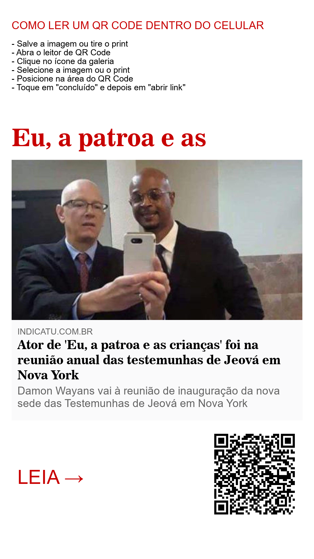 Ator de 'Eu, a patroa e as crianças' foi na reunião anual das testemunhas de Jeová em Nova York