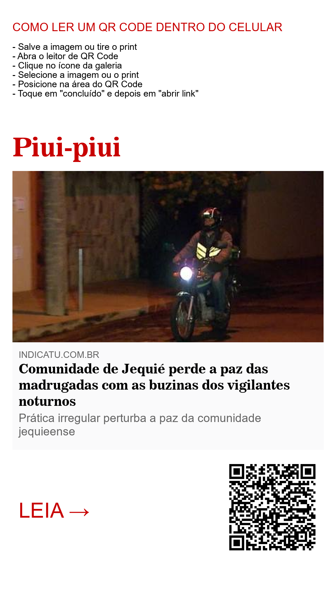 A prática continua sendo um tormento para moradores de vários bairros da cidade de Jequié, principalmente para as famílias com crianças pequenas e filhos recém-nascidos que acordam em plena madrugada com o barulho das buzinas das motos dos vigilantes.