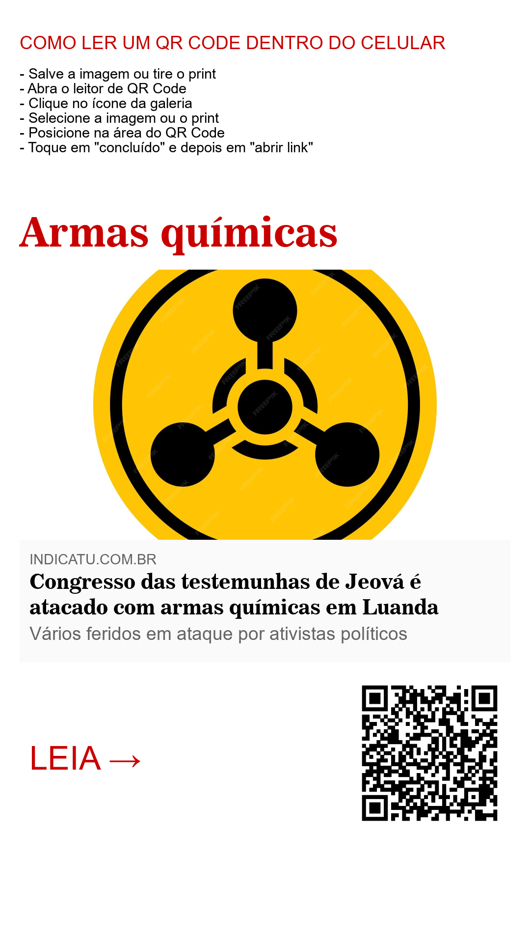 Ativistas políticos de Luanda, capital e maior cidade de Angola, na África, invadiram um congresso regional das testemunhas de Jeová hoje (26) por volta das 15:00h, no segundo dia do congresso, e jogaram gás tóxico nos presentes deixando vários feridos.