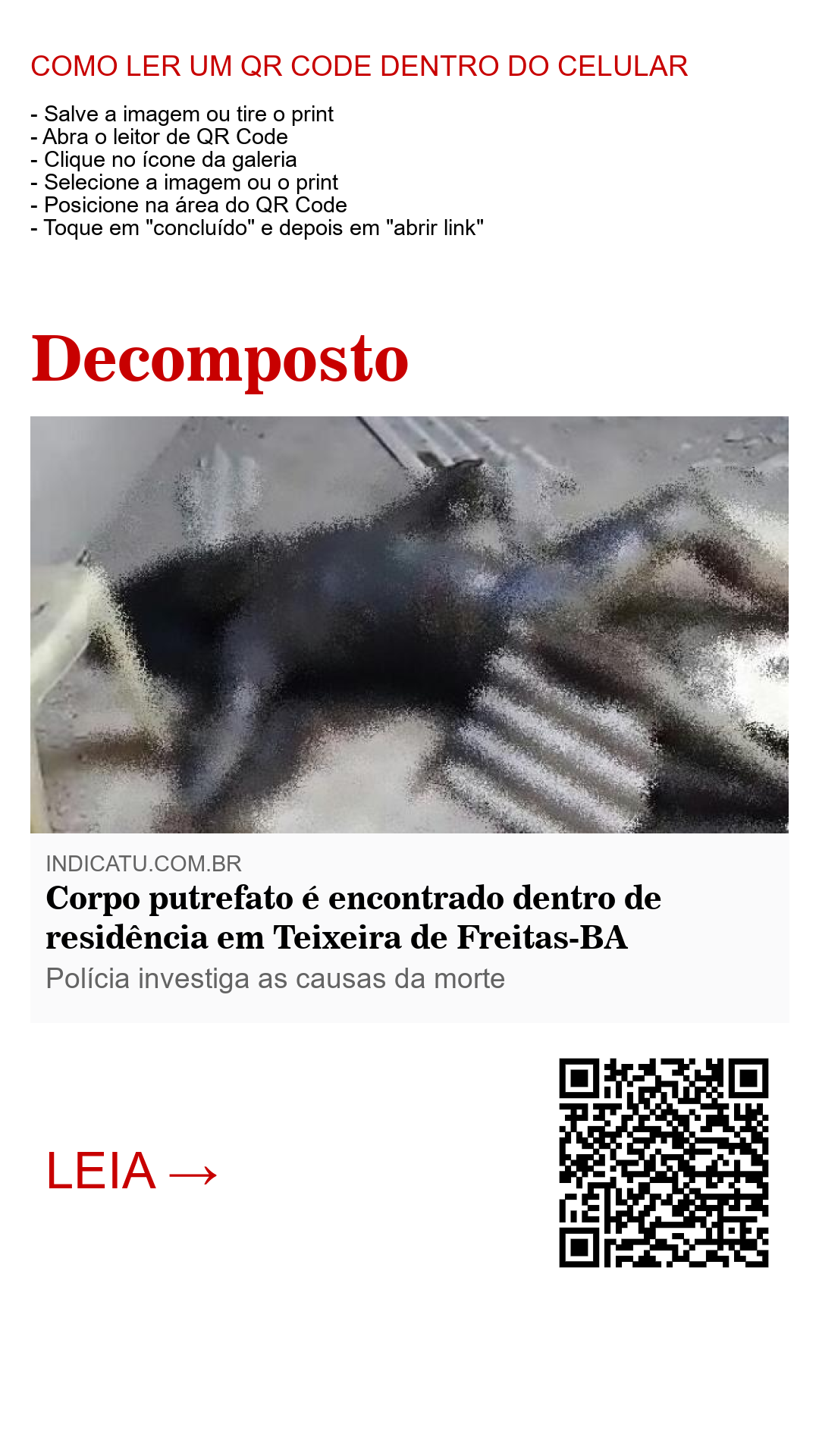 Informações dão conta de que um corpo em estado avançado de decomposição foi encontrado dentro de uma residência na rua Amélia, no bairro Castelinho, em Teixeira de Freitas-BA.