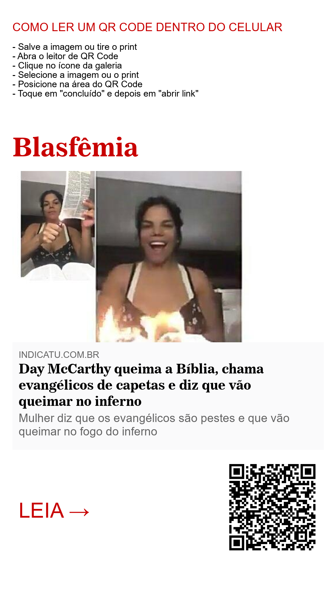 A influenciadora Day McCarthy voltou a gerar polêmica nas redes sociais após publicar um vídeo em que rasga páginas da Bíblia e as queima. Nas imagens, ela afirma ter sido alvo de ataques de evangélicos, que a acusam de “não ser filha de Deus” e de ter “pacto com o diabo”.