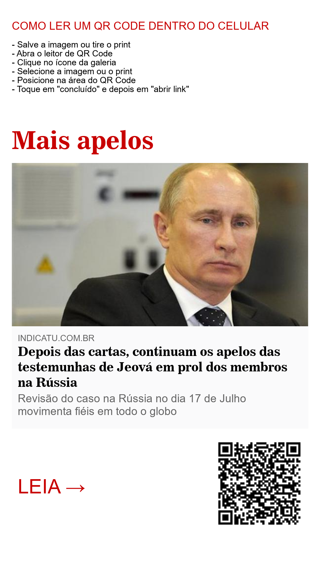 Depois das cartas, continuam os apelos das testemunhas de Jeová em prol dos membros na Rússia