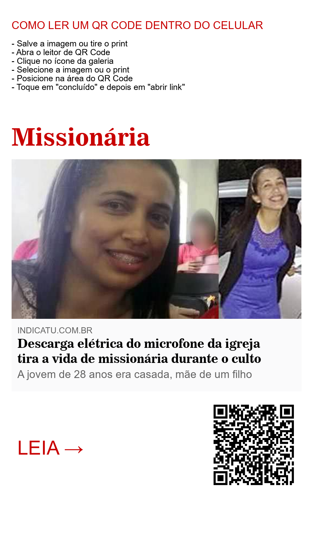 Foto: Reprodução - A jovem missionária era casada, professora e mãe de um filho