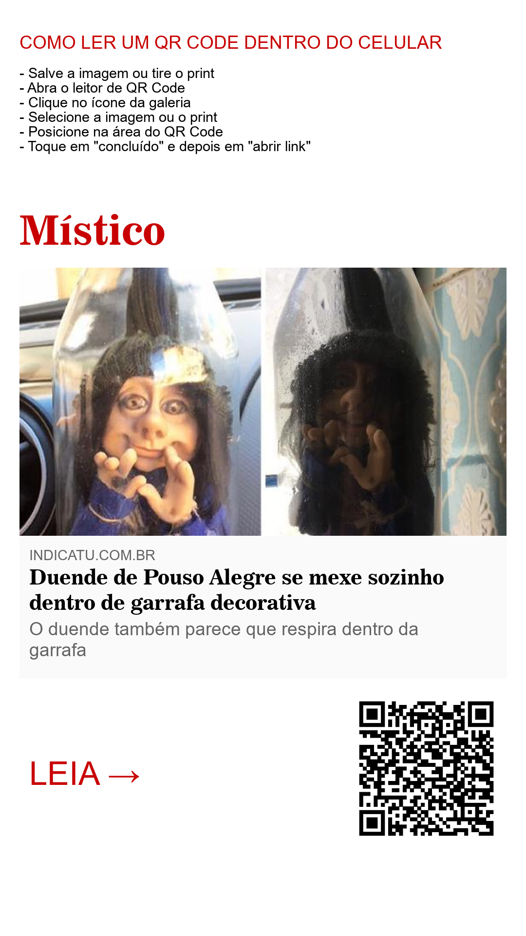 Um fato curioso, ou supersticioso, viralizou nas redes sociais após uma estudante, moradora da cidade de Pouso Alegre-MG, de passeio por São Thomé das Letras, também em Minas Gerais, ter comprado como lembranças um duende que vem dentro de uma garrafa.