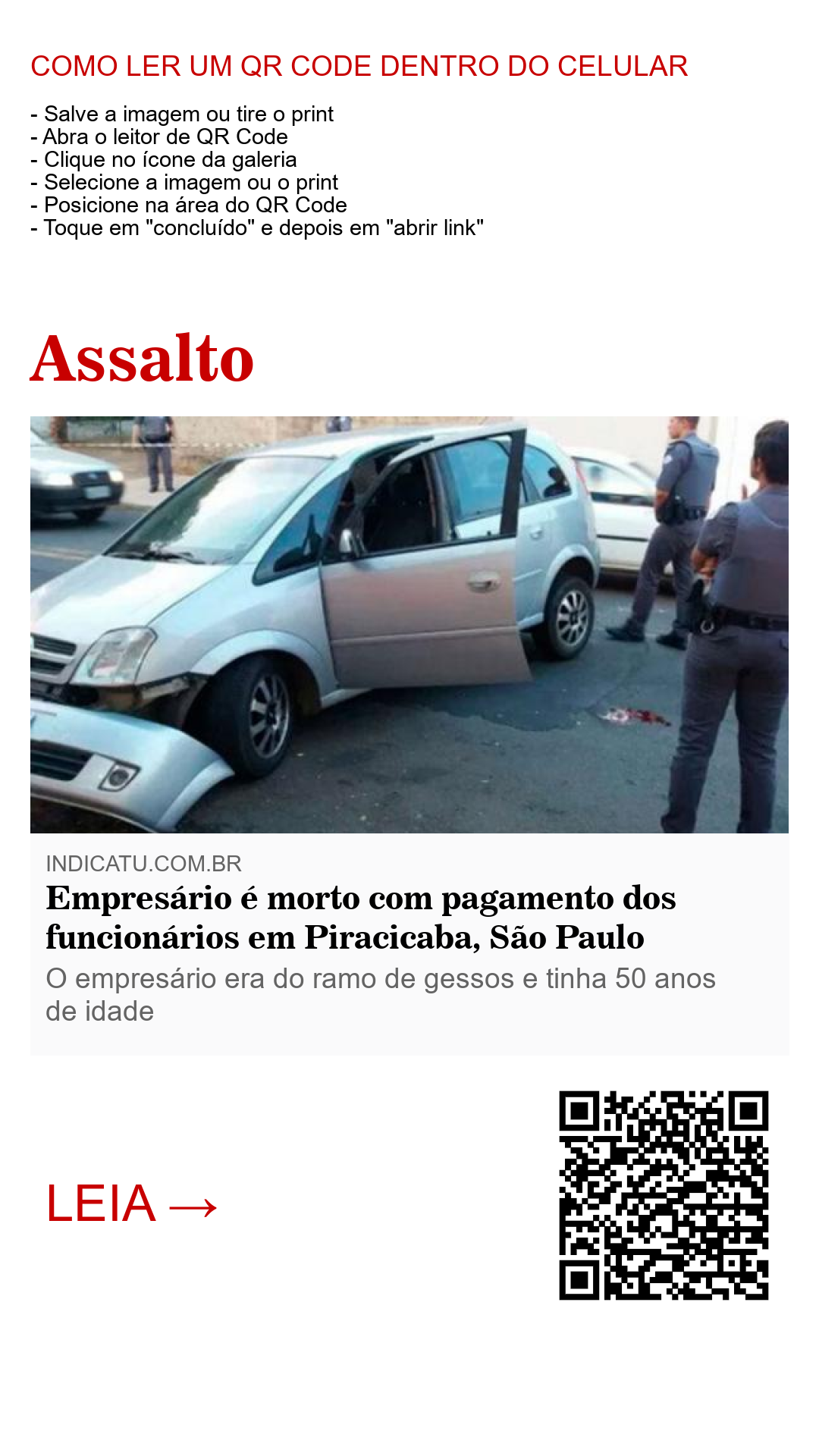 Um empresário do ramo de gessos na cidade de Piracicaba, interior paulista, foi morto em uma tentativa de assalto nesta tarde de quarta-feira (09), quando um bandido se aproximou a pé do seu veículo e anunciou o assalto.