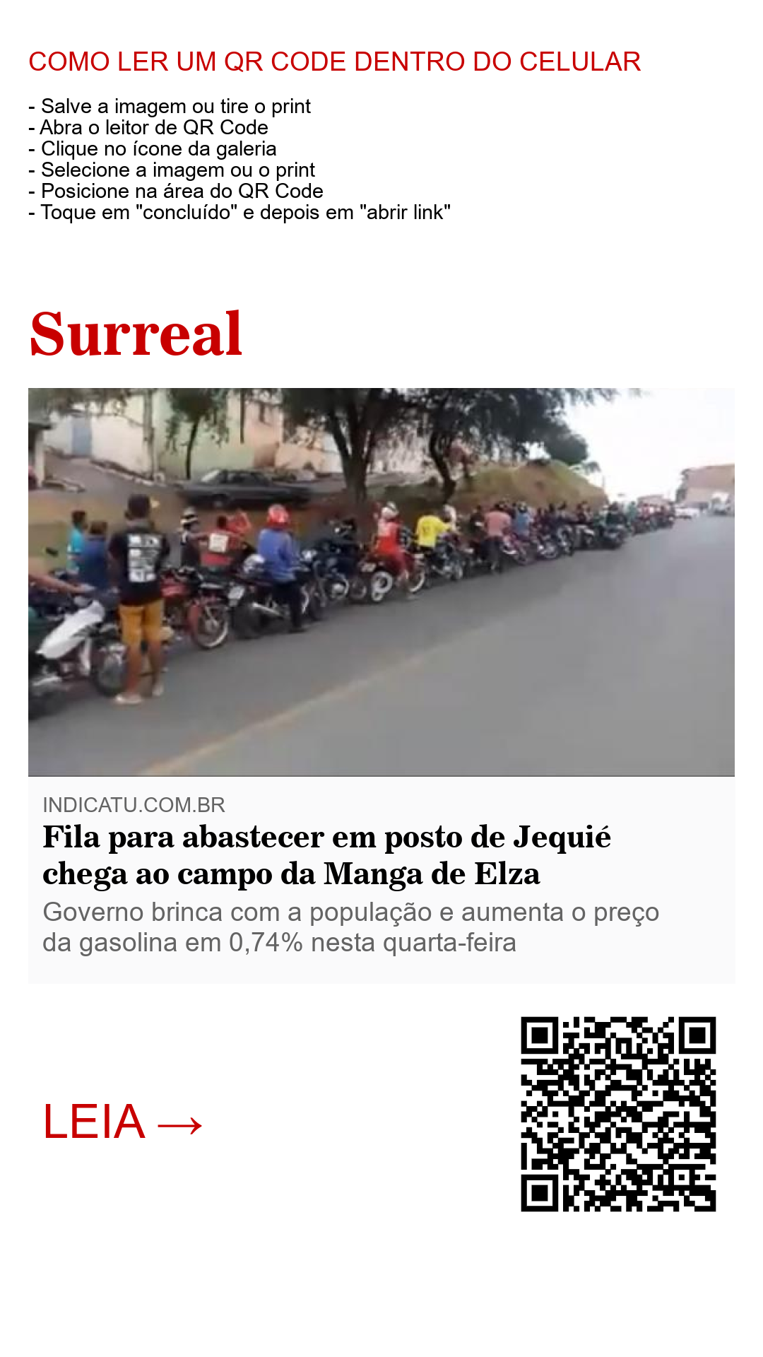 Em Jequié, no médio sudoeste baiano, as filas para abastecer os carros e motocicletas são surreais. Em um posto da cidade, o final da fila foi parar em um campo de futebol após dá várias voltas por vielas em torno do posto, conhecido como campo da manga de Elza, uma área que há décadas atrás era propriedade de uma notória família na cidade.