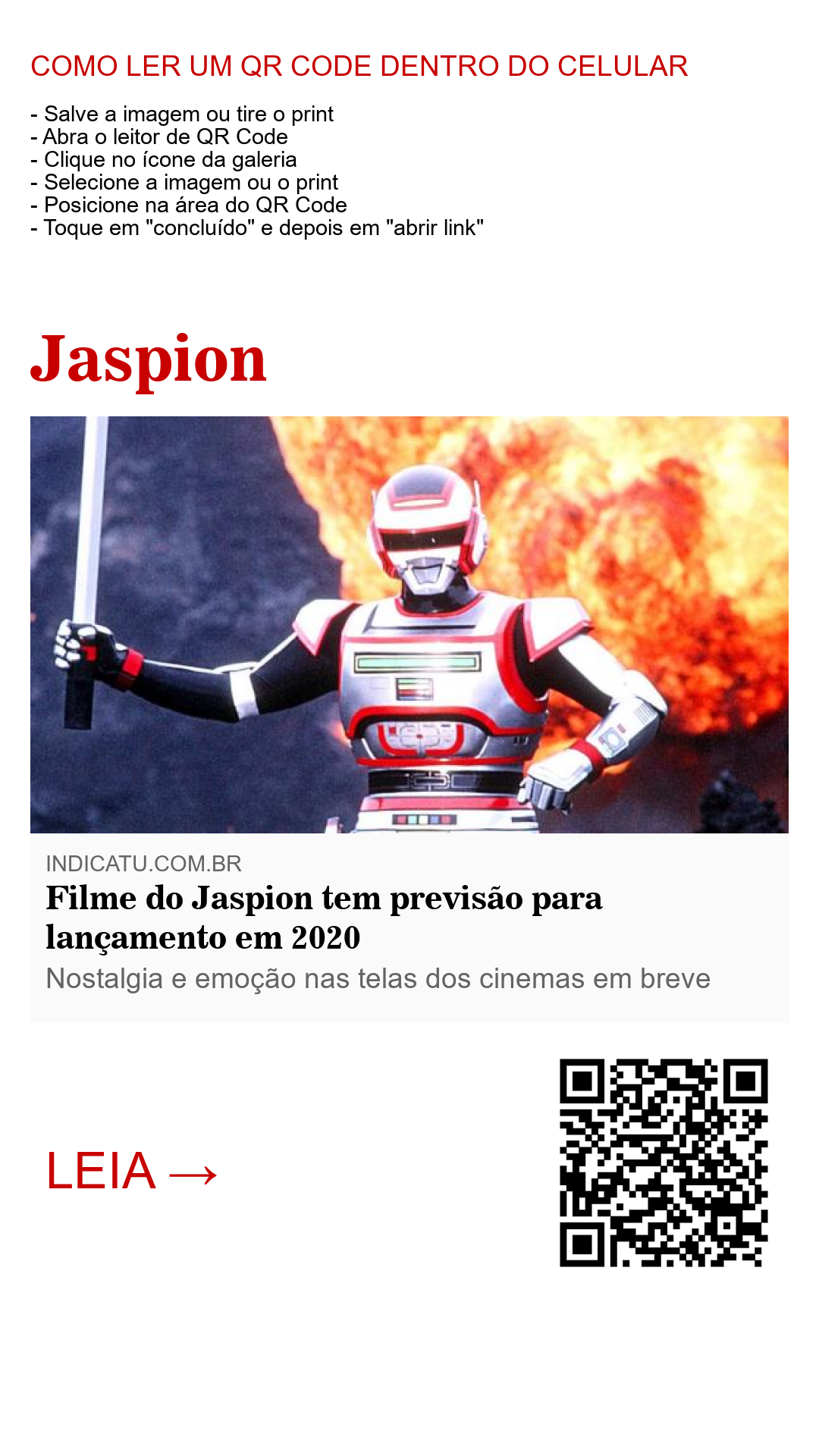 Após grande repercussão na internet, o filme do Jaspion ,que tinha previsão de lançamento ainda para Julho deste ano (19), foi prorrogado por mais um ano, segundo a SatuCompany, empresa de propriedade de “seu Satu”, o homem responsável por trazer o seriado nipônico para o Brasil na década de 80. O motivo para o adiamento, segundo comentários de youtubers famosos apaixonados pelo seriado e que mantém contato estreito com a empresa produtora do filme, foi dito pelo próprio Satu, pois, tamanha a repercussão e palpites de fãs na rede, o filme teve que passar por pesados ajustes e adaptações, visto que o foco será o público fã, sim, o filme será produzido tendo como alvo os fãs do Jaspion, a galera que viveu e curtiu o seriado nos anos 80 e início de 90.