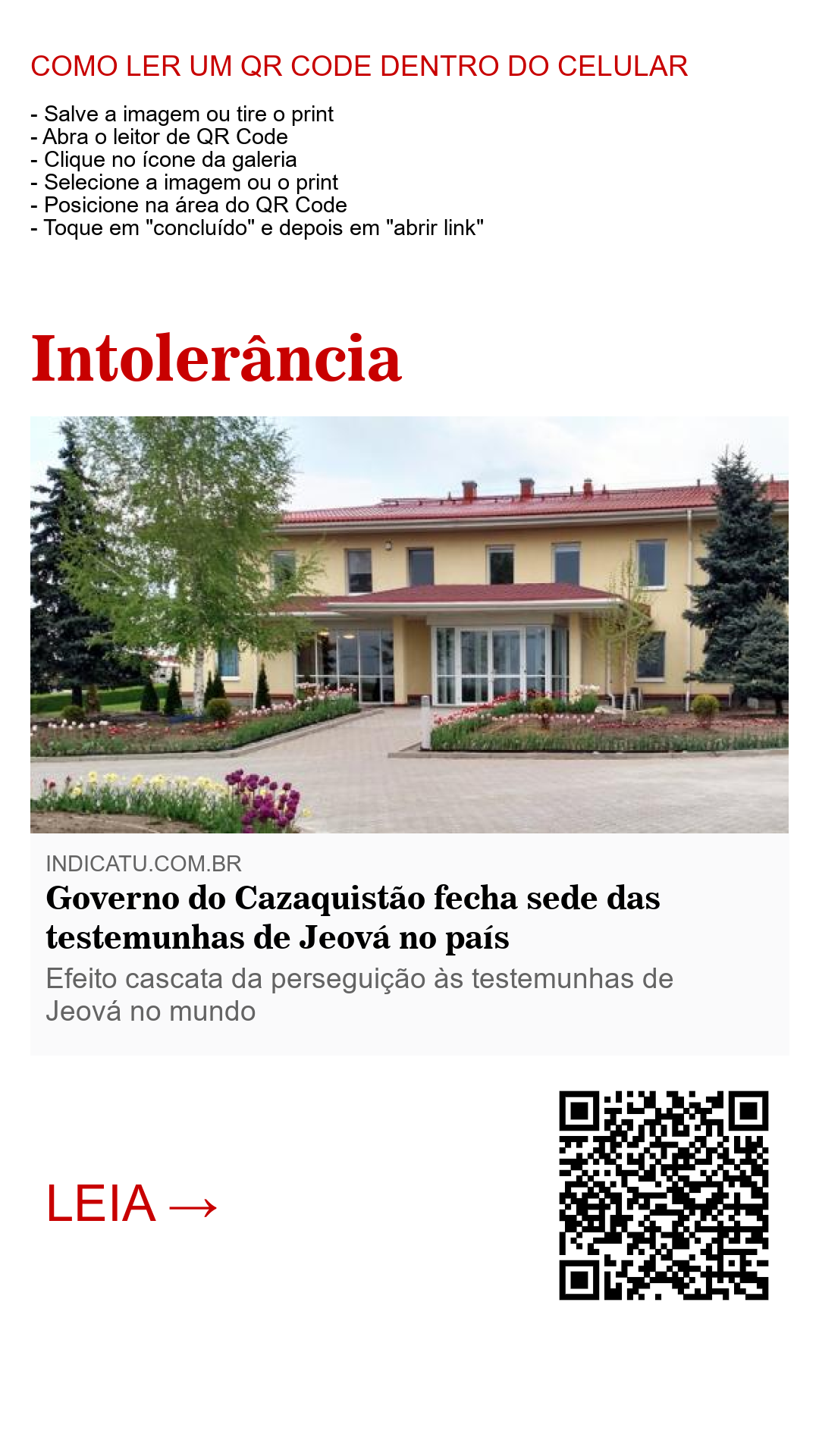 Governo do Cazaquistão fecha sede das testemunhas de Jeová no país