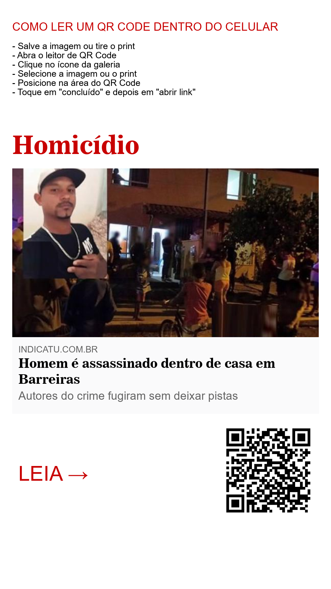 O crime aconteceu por volta das 21:00h nesta noite de terça-feira (24) na rua K do bairro Boa Sorte em Barreiras. A 83ª CIPM esteve no local e fez o isolamento do perímetro para facilitar o trabalho da equipe de polícia técnica, a qual fez a remoção do corpo para o IML.