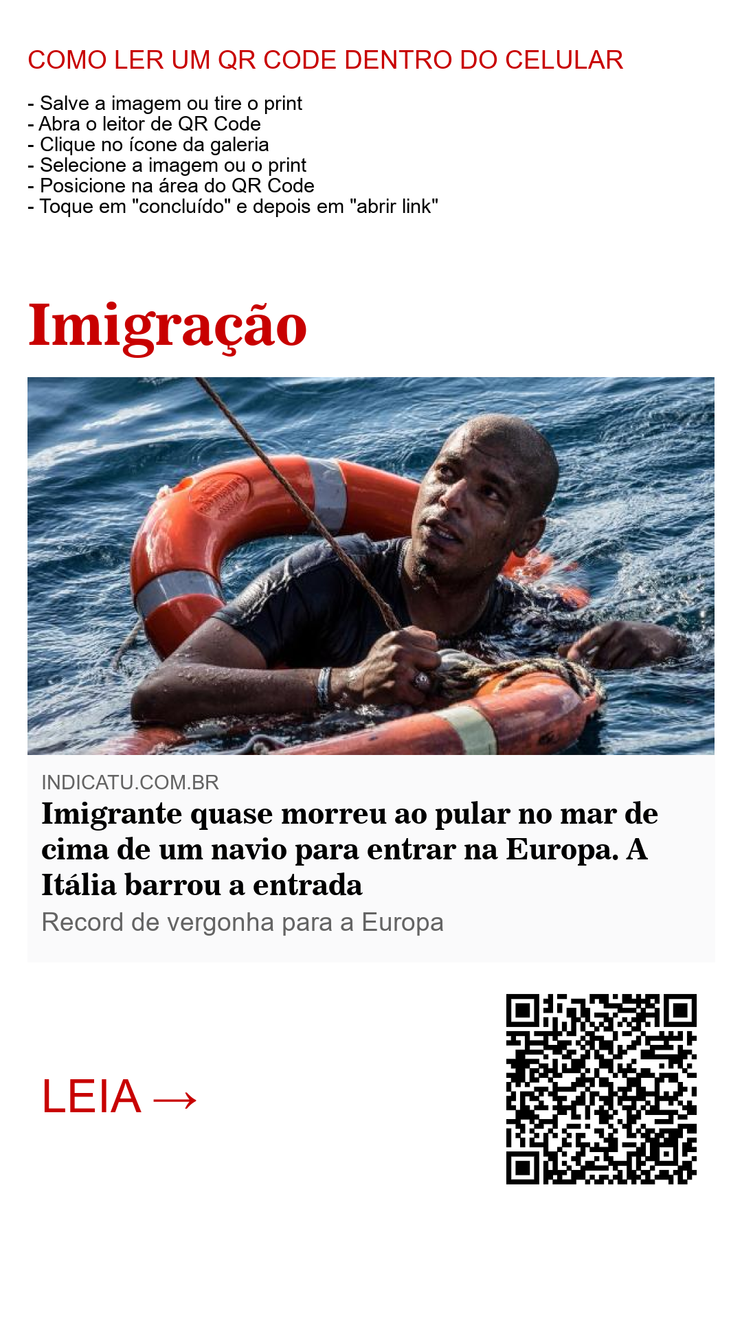 Imigrante quase morreu ao pular no mar de cima de um navio para entrar na Europa. A Itália barrou a entrada