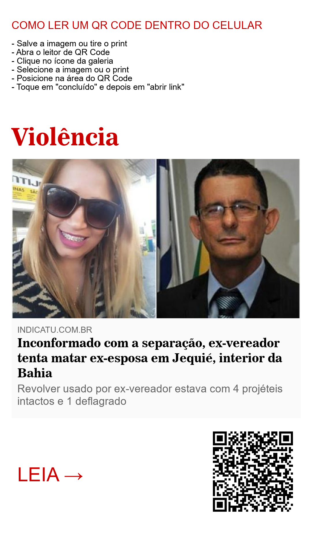 O ex-vereador Manoel Gomes, da cidade de Jequié, no interior da Bahia, por volta das 19:00h desta quinta-feira (07), tentou contra a vida da sua ex-mulher, a senhora Marcela Souza, sua ex-esposa, enquanto a mesma saia de um hospital na rua Abílio Procópio, região central de Jequié.
