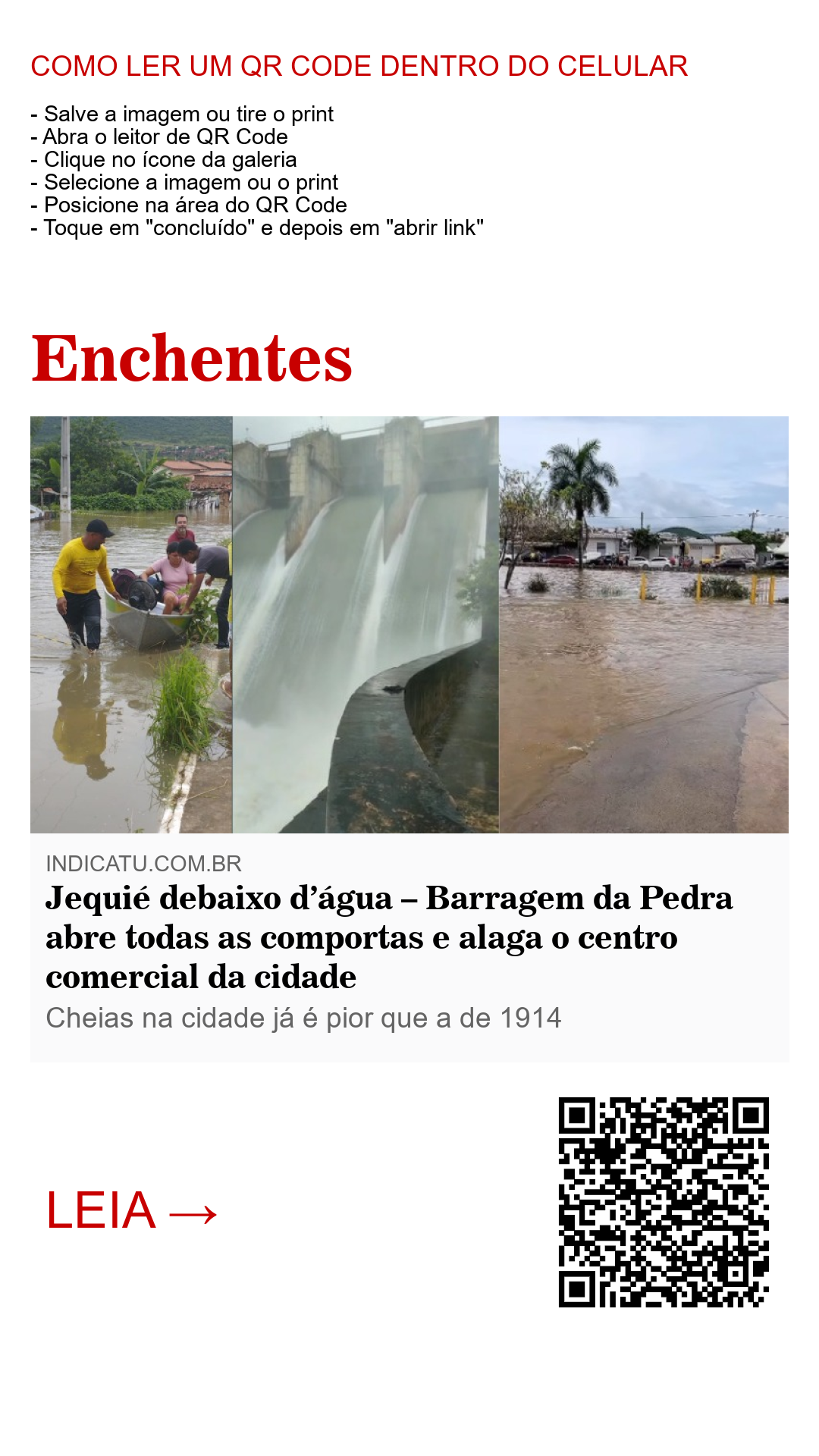 A barragem da Pedra, localizada a cerca de 20 quilômetros da cidade de Jequié, está operando com todas as sete comportas abertas com um volume vazante de 2.400 metros cúbicos de água por segundo a partir de hoje, 25 de dezembro de 2022. As fortes chuvas que têm caído incessantemente na cidade e região nos últimos dias são as causadoras do medo dos munícipes, principalmente dos moradores das regiões de baixadas, não necessariamente próximas às margens do Rio das Contas, principal rio que corta da cidade. Além deste, o Rio Jequiezinho, que deságua no Rio das Contas, também transbordou e alagou a maior e principal parte do centro comercial da cidade, deixando comércios inteiros com mercadorias à deriva nas correntezas e alagamentos que fluem dos pontos de origem das cheias descomunais nunca antes vista na cidade.