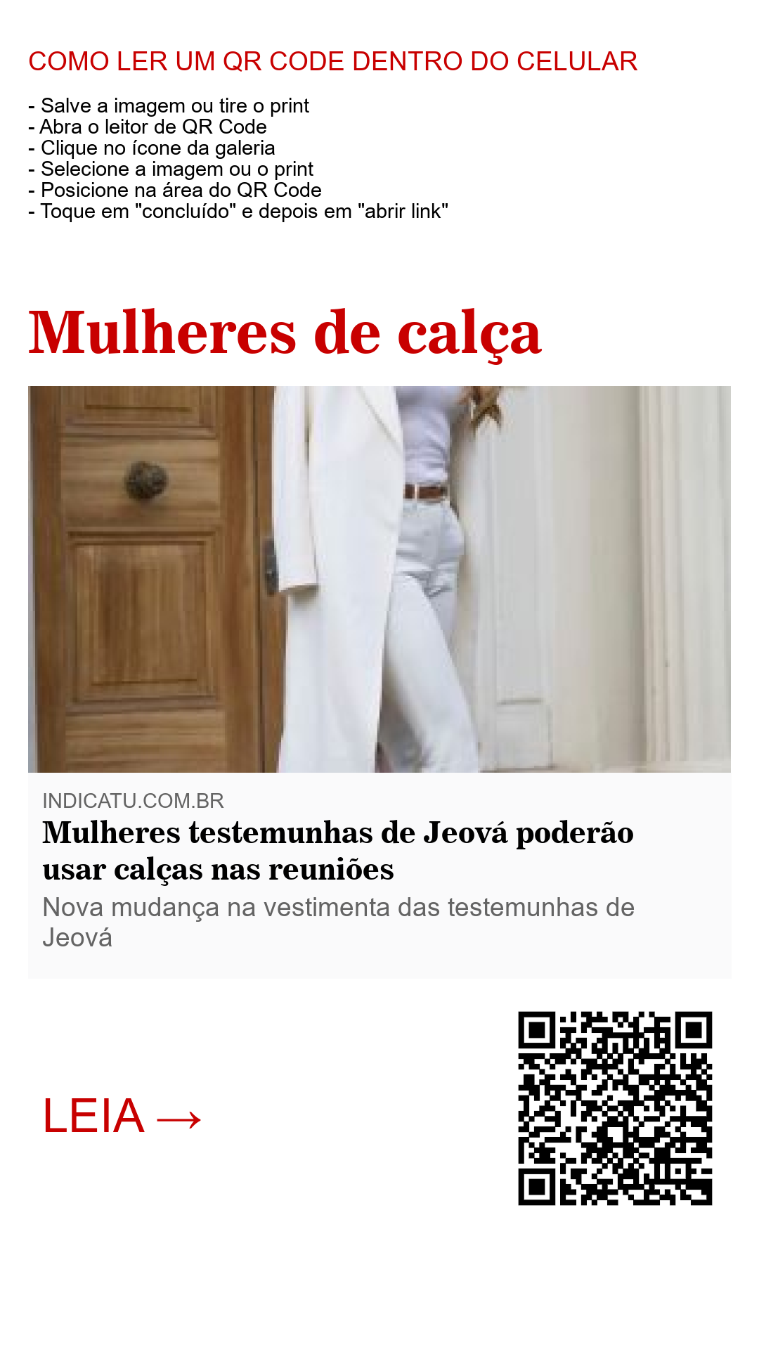 Mulheres testemunhas de Jeová poderão usar calças nas reuniões