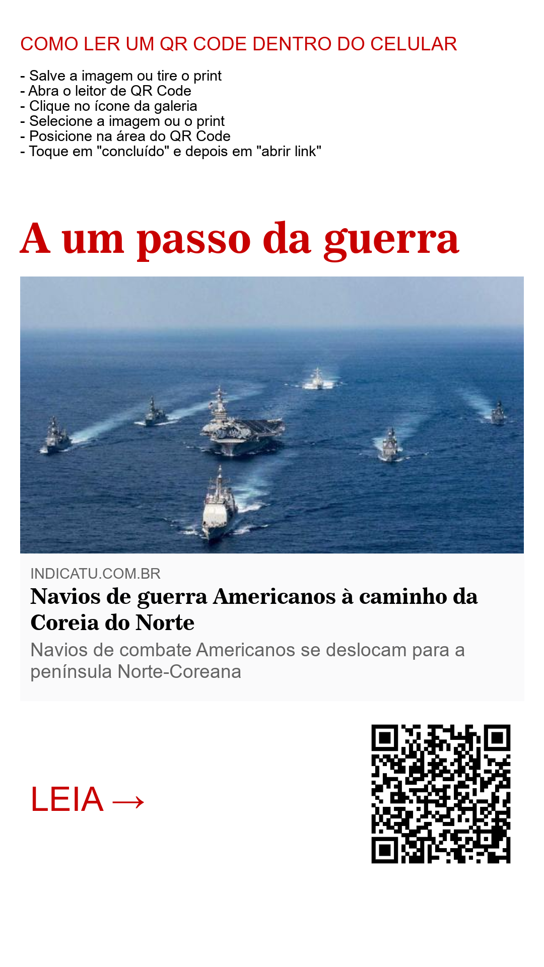 Navios de guerra Americanos à caminho da Coreia do Norte
