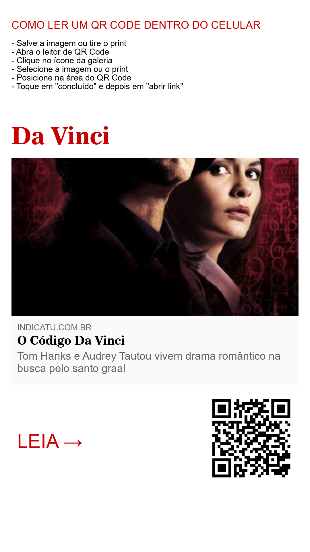 No filme O Código Da Vinci, Tom Hanks desempenha o papel de Robert Langdon, um professor de história que se vê envolvido em uma intrincada trama de mistérios e segredos. A história começa quando seu amigo Jacques Saunière, membro de uma sociedade secreta milenar, é brutalmente assassinado. A cúpula de um conselho obscuro do Vaticano está determinada a erradicar qualquer ameaça à fé católica, e a morte de Saunière desencadeia uma série de eventos que revelam uma conspiração que remonta a séculos. Através de uma sequência de códigos e símbolos, os protagonistas são levados a um artefato sagrado cuja descoberta poderá abalar as fundações da Igreja.
