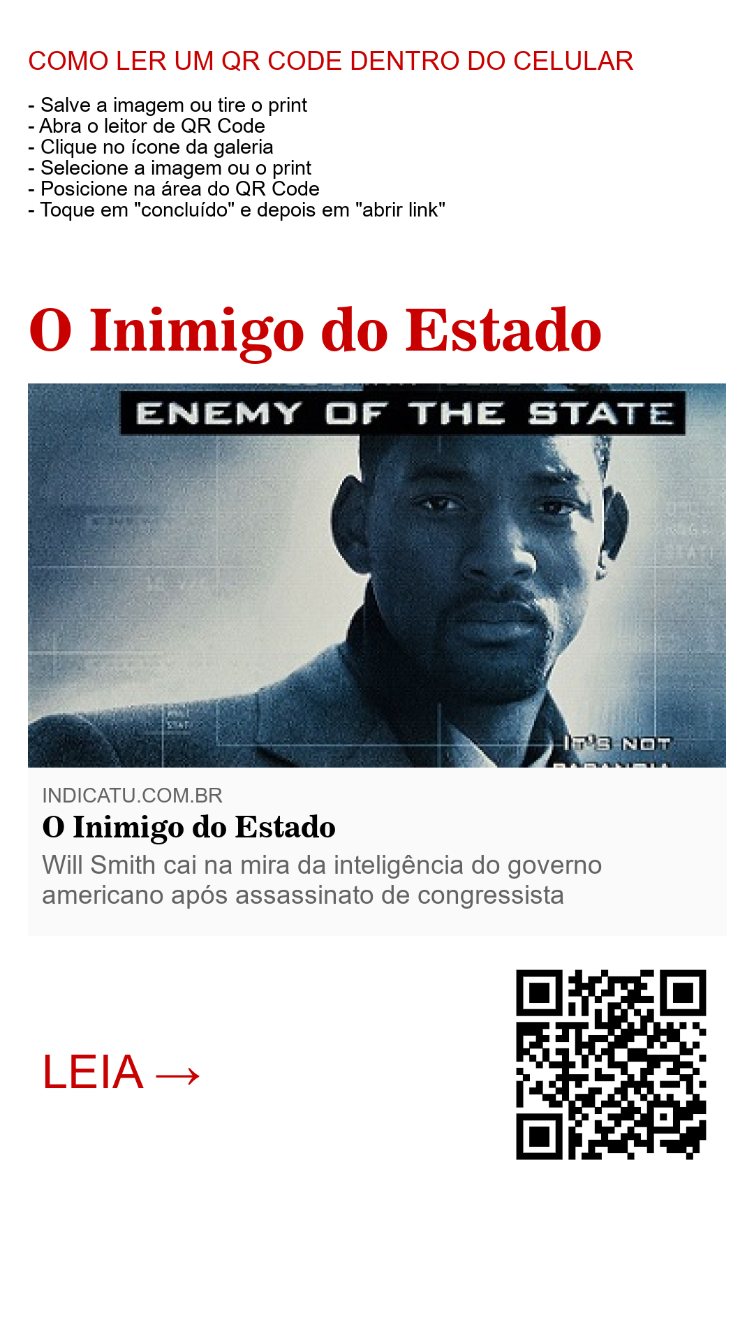 No fim das contas, Inimigo do Estado mostra o quão sinistra a política pode ser. E ainda mais como as estruturas de poder muitas vezes cobram caro de quem ousa desafiá-las. Will Smith mandou muito bem, mas fica aquela reflexão sobre o que alguns têm que passar pra chegar ao topo em Hollywood.