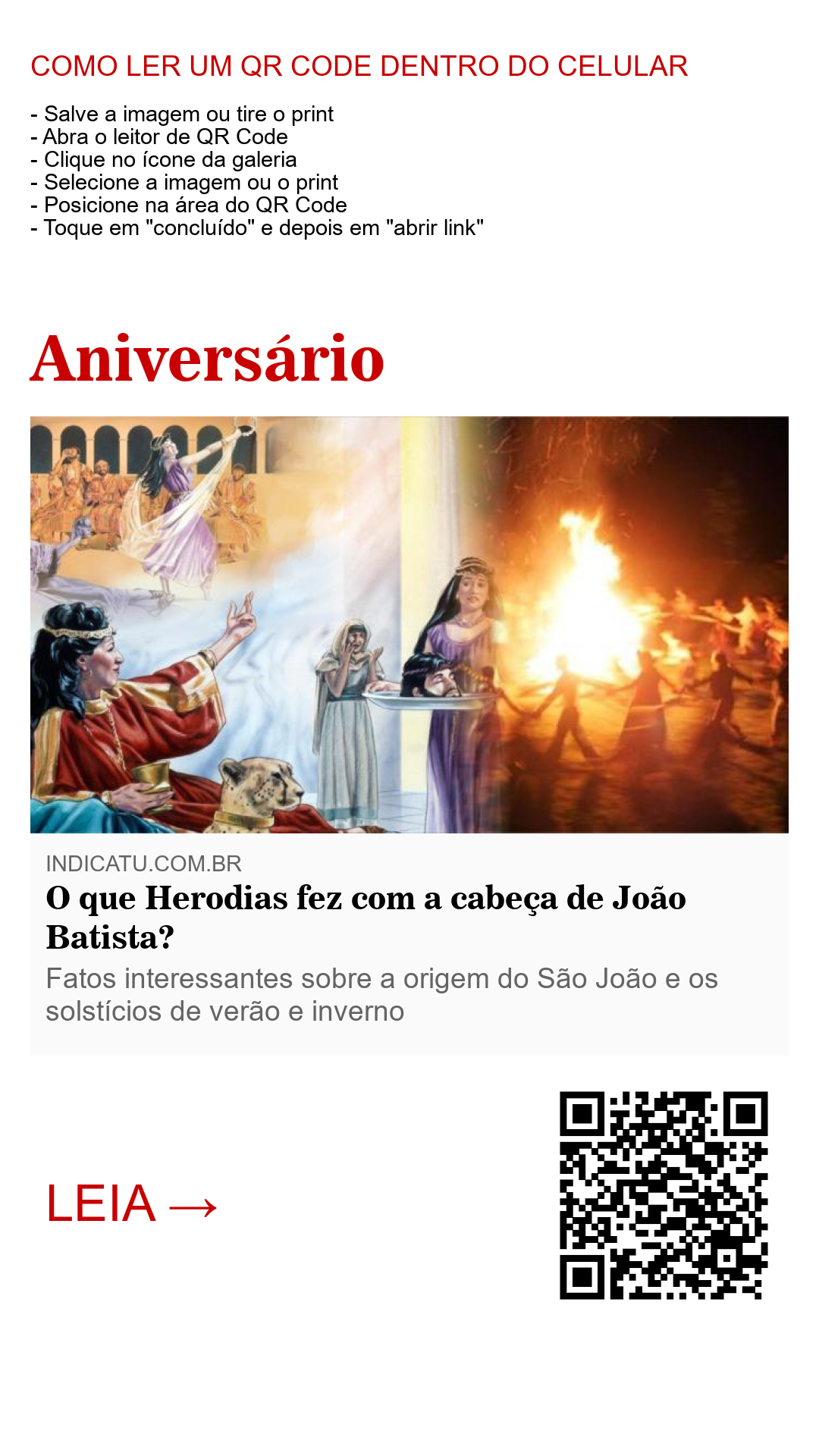 Tudo o que aconteceu naquela noite, naquela festa, foi nojento e vomitante. A festa de aniversário, com suas origens pagãs, já era, por si só, repulsiva, e como se não bastasse, acrescentou-se a isso o assassínio de um servo de Deus naquele evento. Achando que estava pouco, Herodias revelou a prostituta que era em todos os sentidos, moral e espiritual, e foi além do crime, cuja autoria se deu a seu pedido. Ali, naquela noite, ela reviveu o papel da antiga rainha Jezabel, a velha meretriz que, a mais de seiscentos anos antes dela, havia aterrorizado profetas e profanado a adoração pura em Israel (reino de dez tribos). Depois de receber em uma bandeja a cabeça de João Batista, ela comandou os ritos naquele festejo profano que entraria noite a dentro, regada a comidas e muita, muita bebida. Ela ordenou a um dos servos que espetasse a cabeça de João em uma vara e a fincou no chão. Mandou também que pusessem lenha em volta do mastro onde estava cravado o crânio do profeta e acendessem o fogo. Ela chamou os convidados que ali estavam e todos deram as mãos, formando uma roda em volta da fogueira. Enquanto o fogo ardia, ela regeu a cantiga que dizia: “viva, João, viva”, sendo cantarolada por todos dentro e fora da roda. Aquela dança de roda só parou depois que a grande fogueira consumiu, até virar pó, as memórias da sua vida devassa que, em sua imaginação, ela acabara de apagar. E não parou por aí. A festa continuou até o amanhecer do dia, quando não tinham mais estômago para encher de comida e cachaça. E o que é pior. Com aquele ato, Herodias acabava de lançar no mundo o que seria a base de uma futura festa pagã, profana, destinada a ser celebrada em certa época do ano em afronta ao Deus dos céus.