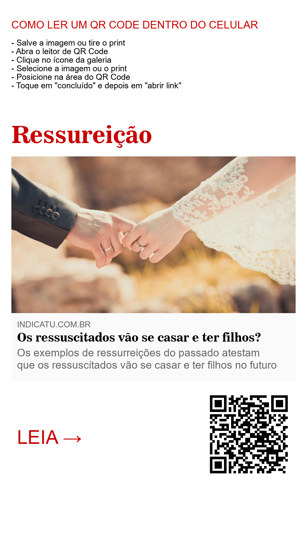 Enfim, respondendo à pergunta deste artigo: “os ressuscitados vão se casar e ter filhos”? A resposta é [Sim] para a ressurreição terrestre, e [Não] para a ressurreição celestial. O propósito divino para o casamento é o descrito em Gênesis, e é assim que será: