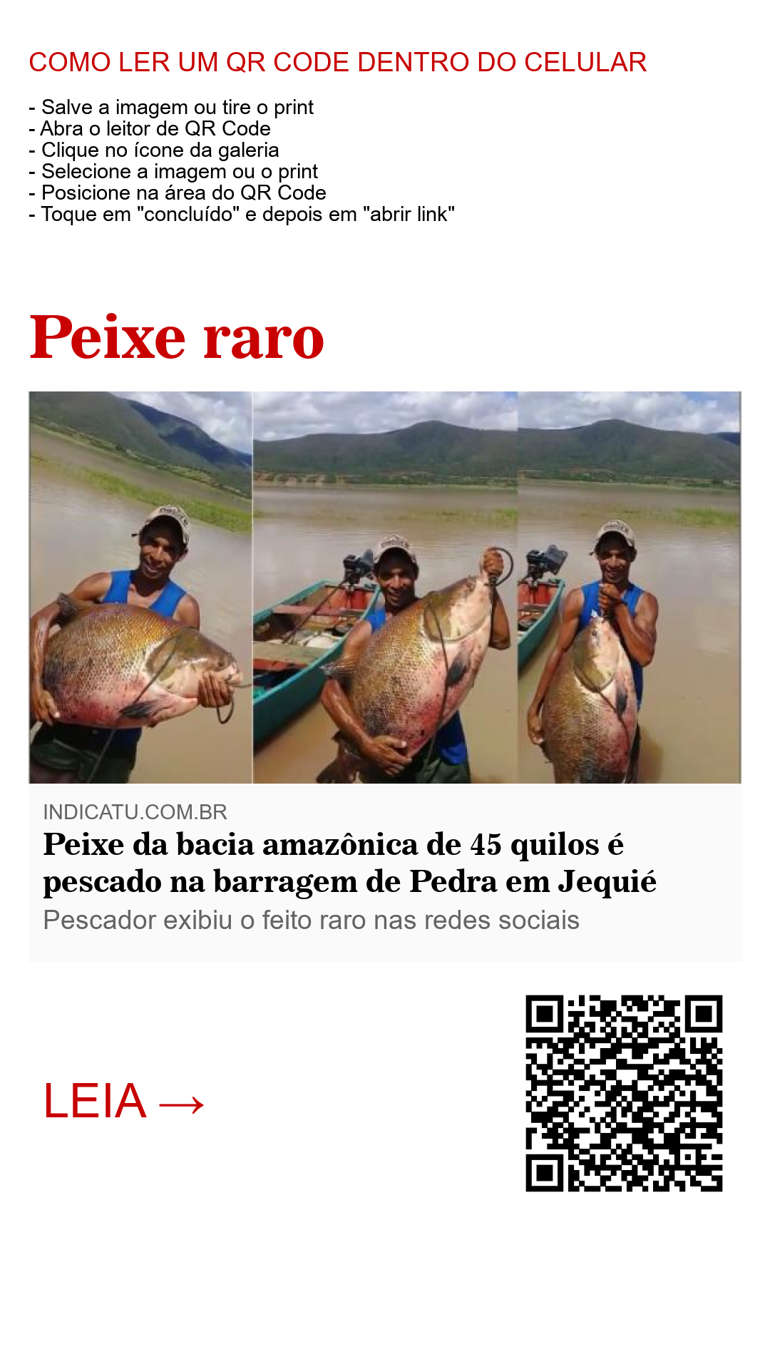 "Vocês fala que Barragem de Pedra não tem peixe grande? Aí óh! É engano óh!? Barragem de pedra tem peixe grande óh!", gabou-se extasiado o aventureiro pesqueiro.