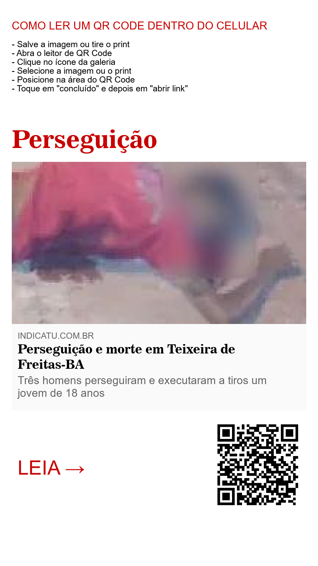 Segue as informações de que um jovem, identificado como Henrique Barbosa Lima de 18 anos, teve sua vida ceifada na noite desta quinta-feira (28) no extremo sul da Bahia. O crime se deu por volta das 21 horas no bairro Vila Vargas, em Teixeira de Freitas. Segundo relatos de testemunhas oculares, o jovem foi perseguido e baleado por três homens, morrendo posteriormente na rua Virgílio da Conceição.