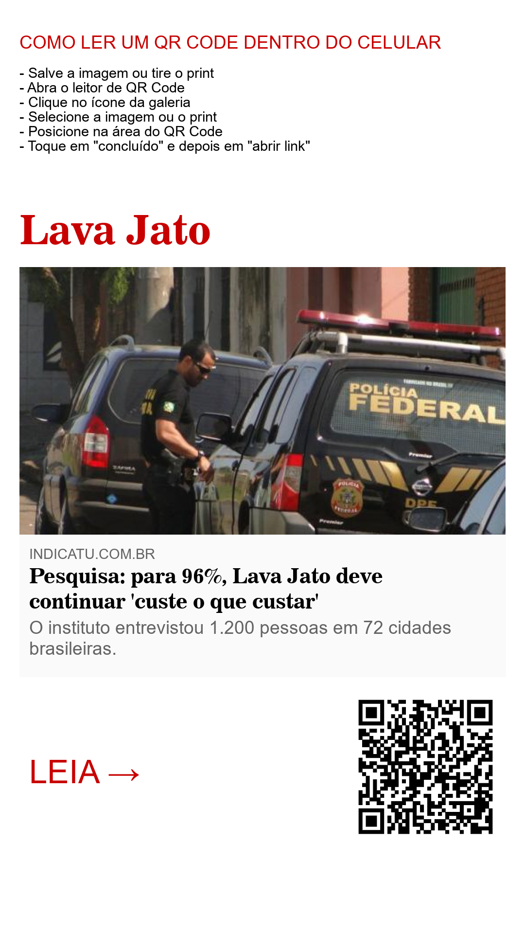 O instituto entrevistou 1.200 pessoas em 72 cidades brasileiras entre 1º e 13 de novembro de 2016. Em janeiro, a mesma pesquisa havia mostrado que 90% apoiavam irrestritamente a ação da Lava Jato.