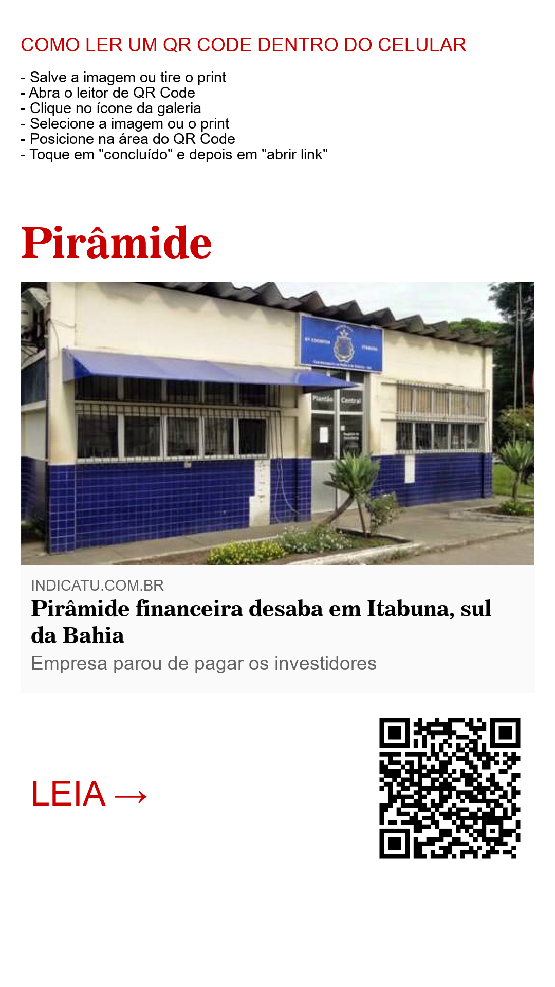A polícia Civil desarticulou um velho esquema de estelionatários virtuais na cidade de Itabuna no sul da Bahia. O negócio na internet, conhecido como 'Pirâmide financeira' já funcionava na cidade desde 2016 e acabou sendo denunciado pelos próprios investidores que se viram lesados pelo esquema enganoso e fraudulento.