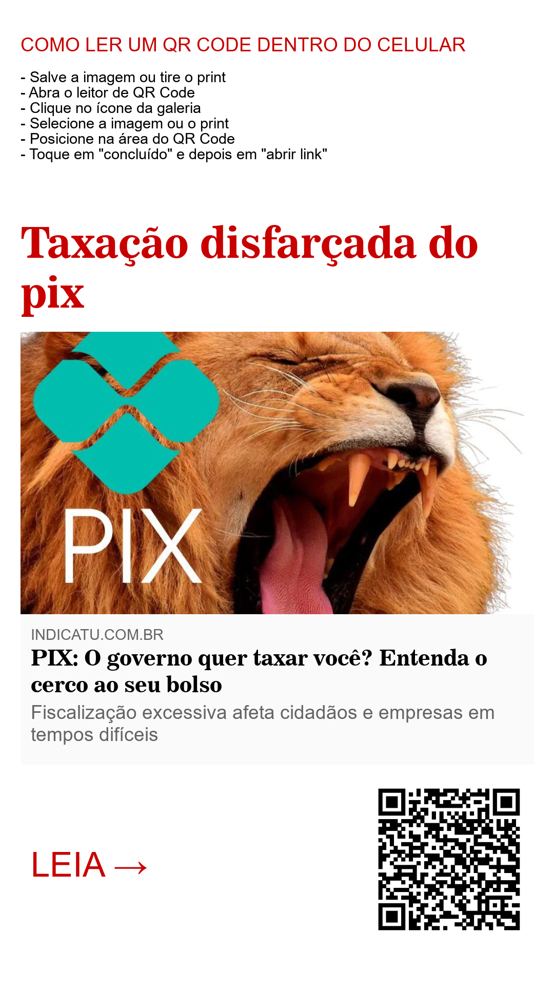 O governo atual, com o apoio de um STF cada vez mais interventor, segue criando dificuldades para a população. A nova regra de fiscalização sobre o PIX é mais uma prova de como as liberdades individuais estão sendo minadas sob o pretexto de “organizar” o sistema financeiro. A população brasileira, que já enfrenta altos impostos e um custo de vida crescente, agora vê o PIX, uma ferramenta popular, ser transformado em um instrumento de controle estatal.