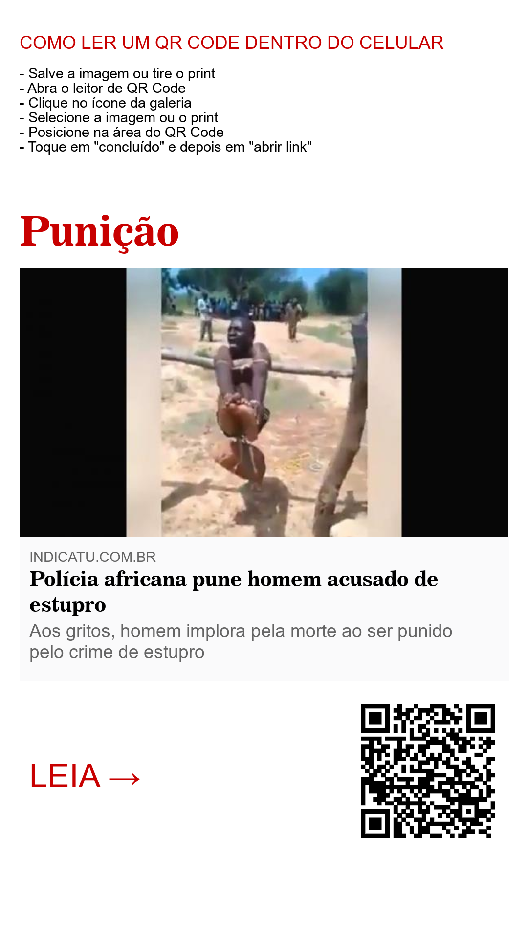 Aos gritos, homem implora pela morte ao ser punido pelo crime de estupro
