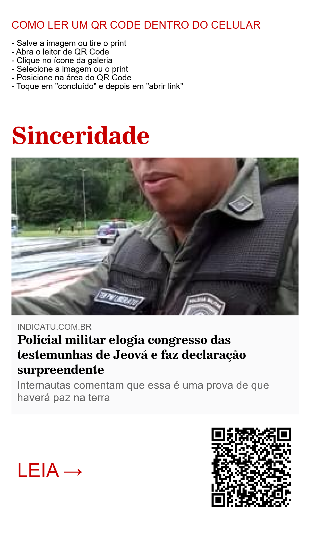 Policial militar elogia congresso das testemunhas de Jeová e faz declaração surpreendente