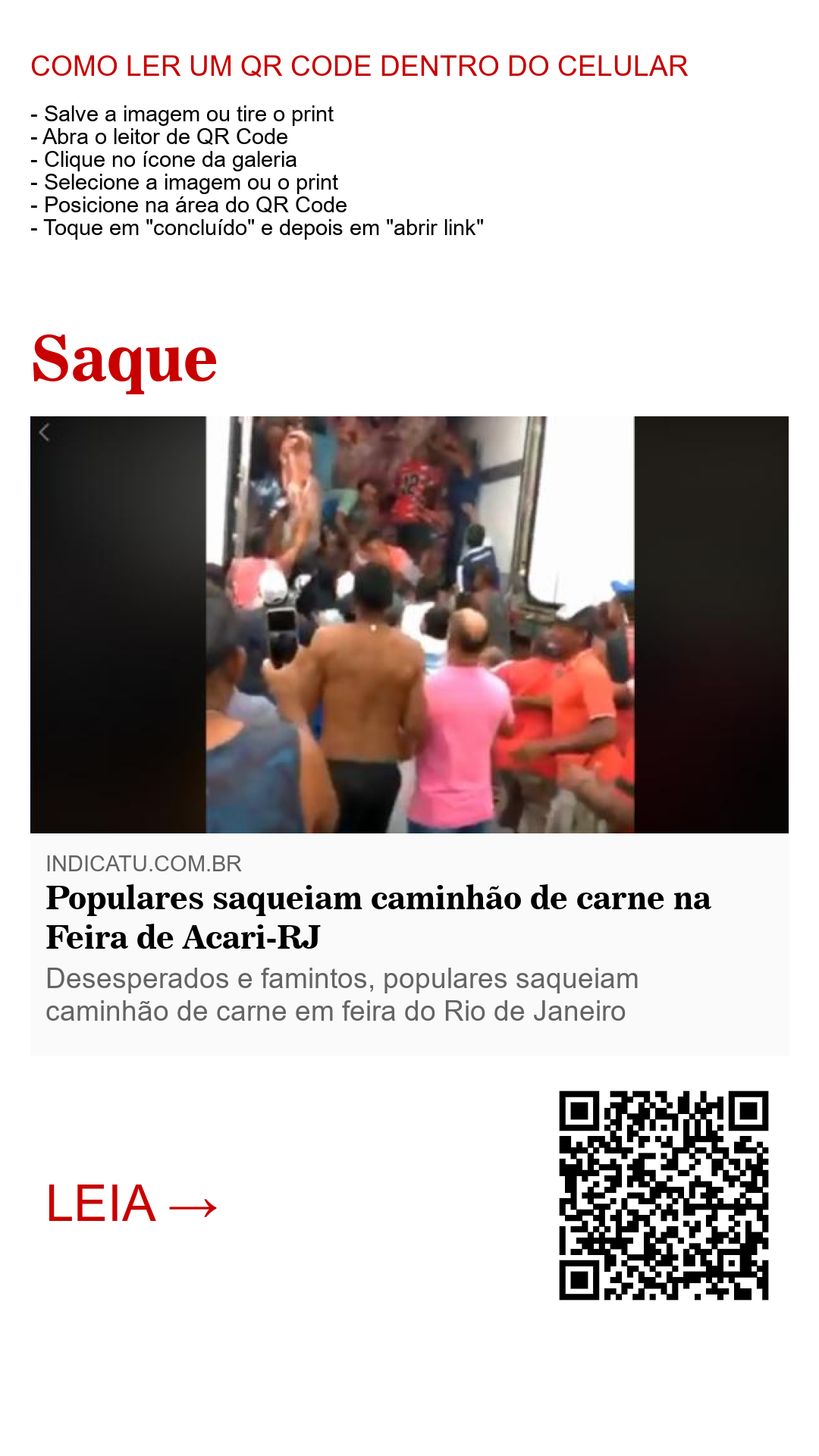 Um internauta gravou a ação de populares movidos pela fome na famosa Feira de Acari, Rio de Janeiro, saqueando um caminhão de carne na manhã do último domingo (08).
