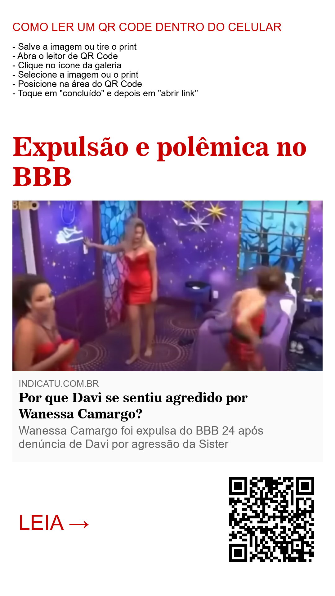 Ela queria fazer aquilo mais de perto dele, e foi em um dos muitos movimentos involuntários que ela fazia que sua mão acabou acertando a perna ou o pé do Davi que estava ali todo encoberto. O ato foi involuntário, não intencional. Mas na cabeça do Davi, e de qualquer um que estivesse naquele contexto de visão limitada, o ato da Wanessa foi intencional. O ponto de vista de quem estava embaixo do edredom e não via a cena como um todo foi de que a provocação extrapolou os limites. Para o Davi, que já vinha de muitos embates com a Wanessa, aquilo passou de um tormento psicológico para uma provocação física, e por isso ele se sentiu agredido. Mas a Wanessa não queria agredi-lo fisicamente. Na verdade, as agressões psicológicas que ela fez com ele durante sua estadia na casa foram muito mais graves do que aquilo que chamam de “tapa”. Segundo o que se diz, nas regras do programa constam que não pode haver “toque” entre os participantes. Nesse sentido, por mais que o ato da Wanessa foi involuntário e não intencional, ela tinha que ser expulsa, e a produção não pôde fazer nada pra defende-la.