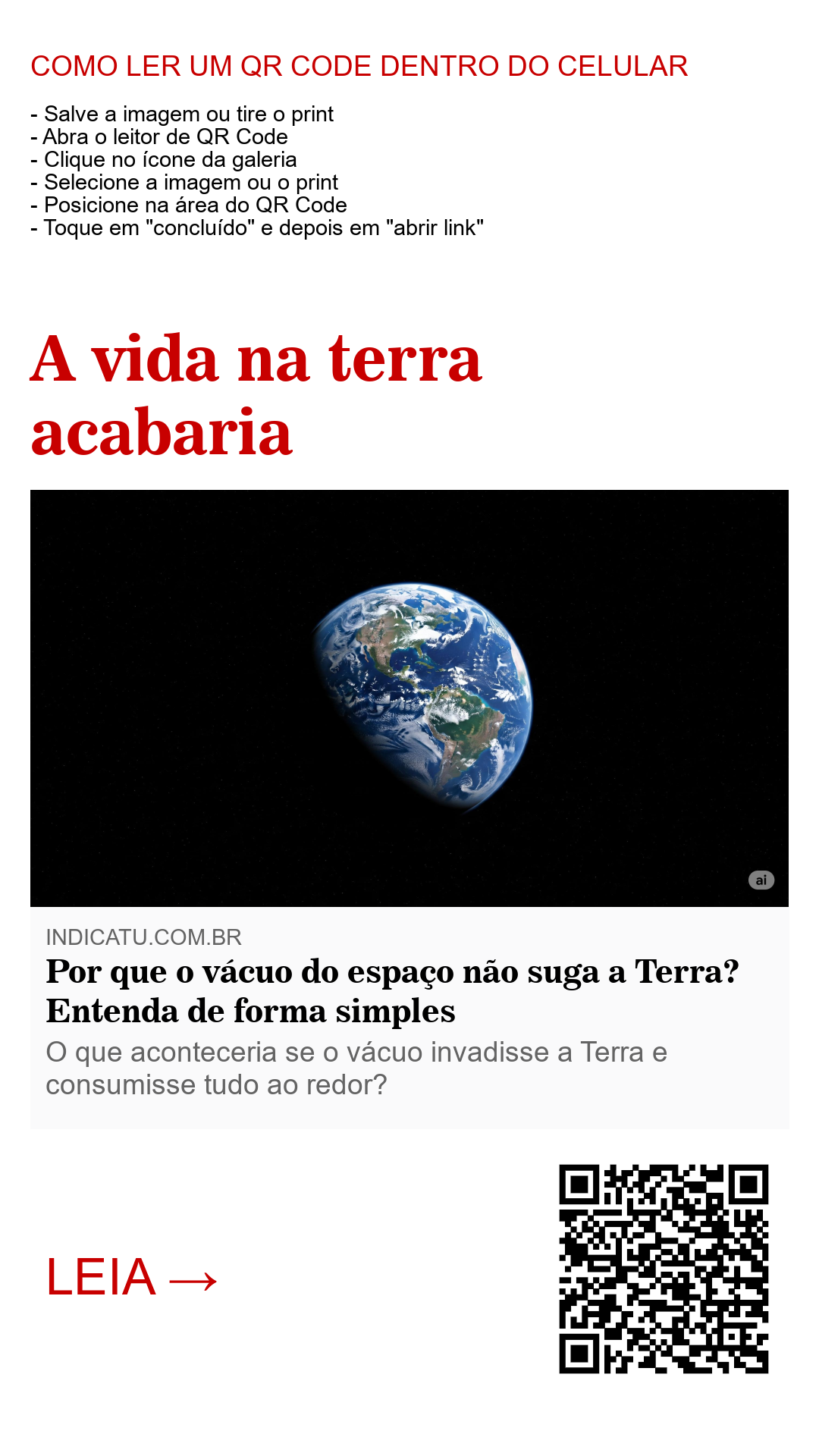 Se, de alguma forma, a Terra perdesse sua atmosfera (por exemplo, se a gravidade sumisse), aí sim o vácuo “entraria”, ou melhor, o ar escaparia violentamente para o espaço. Isso causaria a morte de todos os seres vivos, o colapso de construções e a destruição da vida como conhecemos. Mas esse cenário é extremamente improvável com as leis atuais da física.
