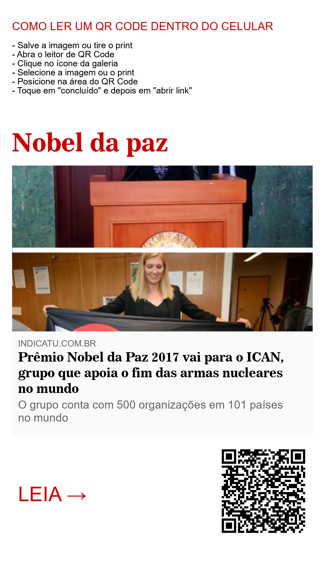 Sexta-Feira, 06 de Outubro de 2017. O prêmio Nobel da Paz deste ano, nesta manhã de Sexta-Feira (06) foi para o ICAN, grupo que apoia o fim das armas nucleares no mundo.