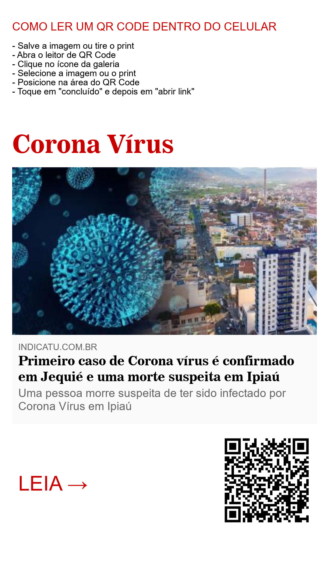 PRIMEIRO CASO DE CORONAVÍRUS CONFIRMADO EM JEQUIÉ