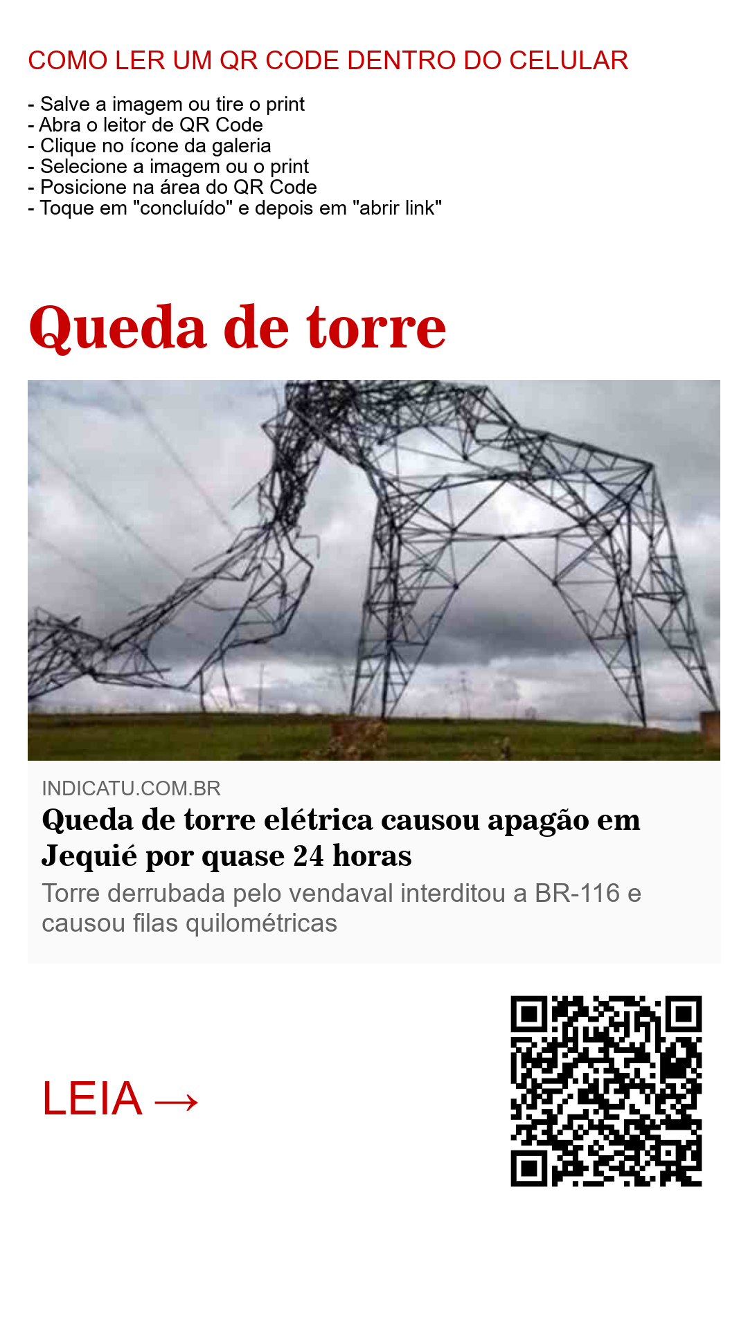 Uma torre de energia foi derrubada pelos fortes ventos que atingiram Jequié e região na tarde desta terça-feira (19). A queda da torre provocou o corte de energia e foi suficiente para deixar Jequié inteira às escuras por quase 24 horas. De acordo com as informações, a energia foi embora por volta das 14h, momento da queda da torre, e só voltou na manhã desta quarta-feira (20) às 9h.