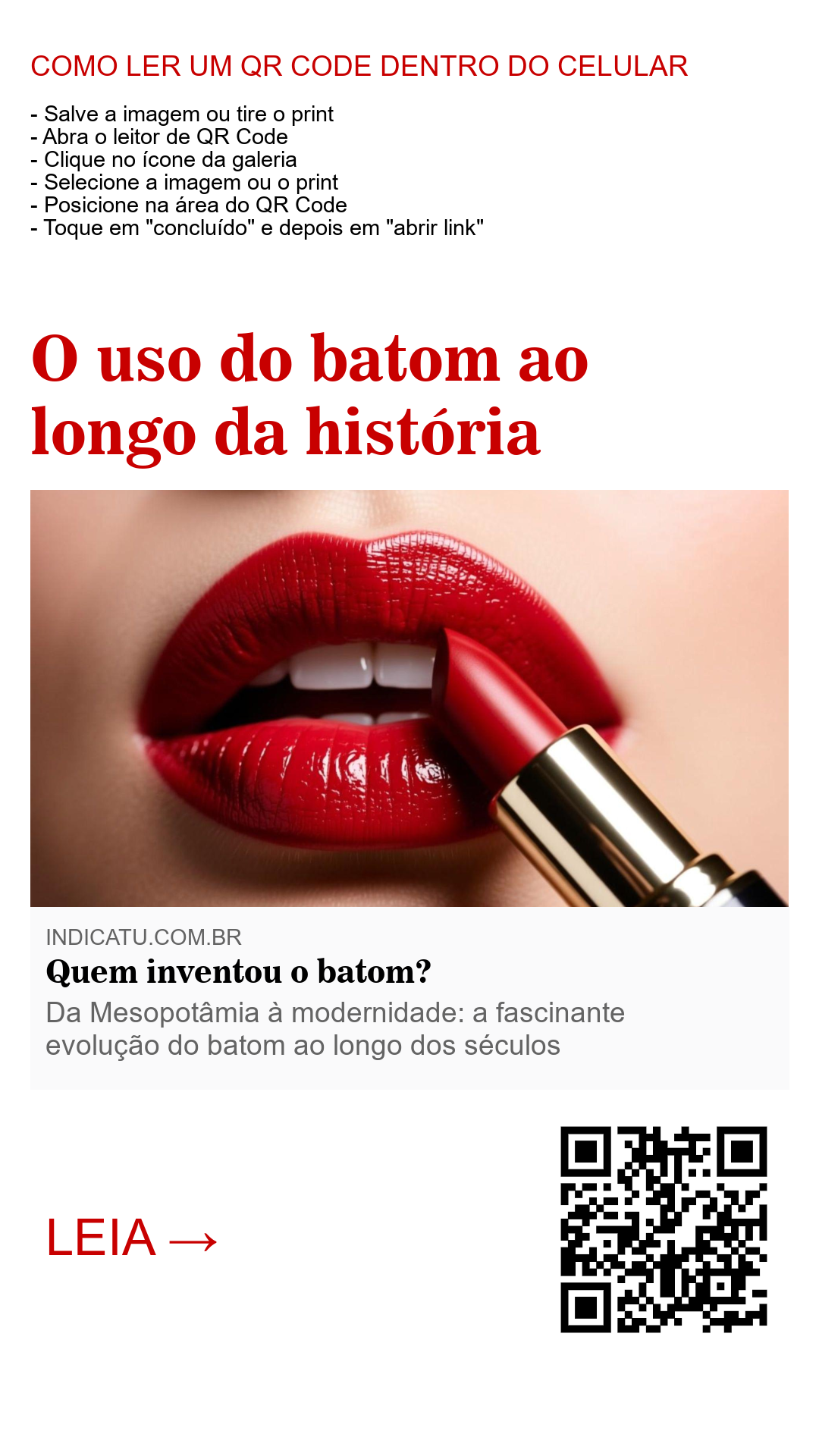 Ao longo da história, o batom provou que um simples toque de cor pode carregar séculos de cultura, poder e transformação.
