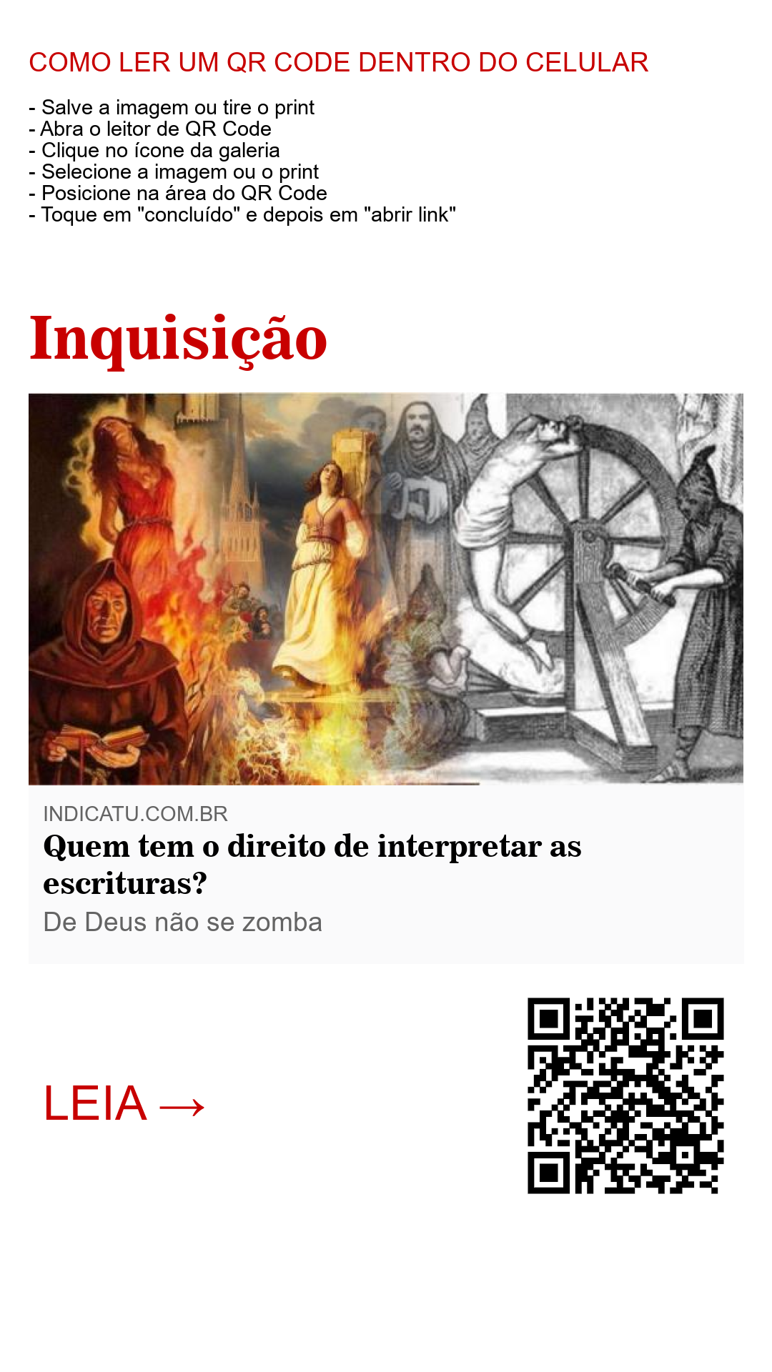 Mas, a questão é: a igreja estava certa em reprimir, censurar, tentar impedir, ou pior, torturar e matar aqueles que se dedicavam ao estudo sério e sincero da bíblia? Há embasamento bíblico, divino, onde Deus insinua ou afirma que Ele reservou o estudo e o ensino da sua palavra como sendo algo restrito a uma igreja e sua liderança ou grupo de homens, autorizando estes a fazer o que a igreja fez, ou quem sabe, fazer adaptações da inquisição original para se praticar o que seria hoje uma espécie de “nova inquisição” contra aqueles que estudam a palavra de Deus e levam esse conhecimento ao público geral? Vejamos o que a bíblia diz.