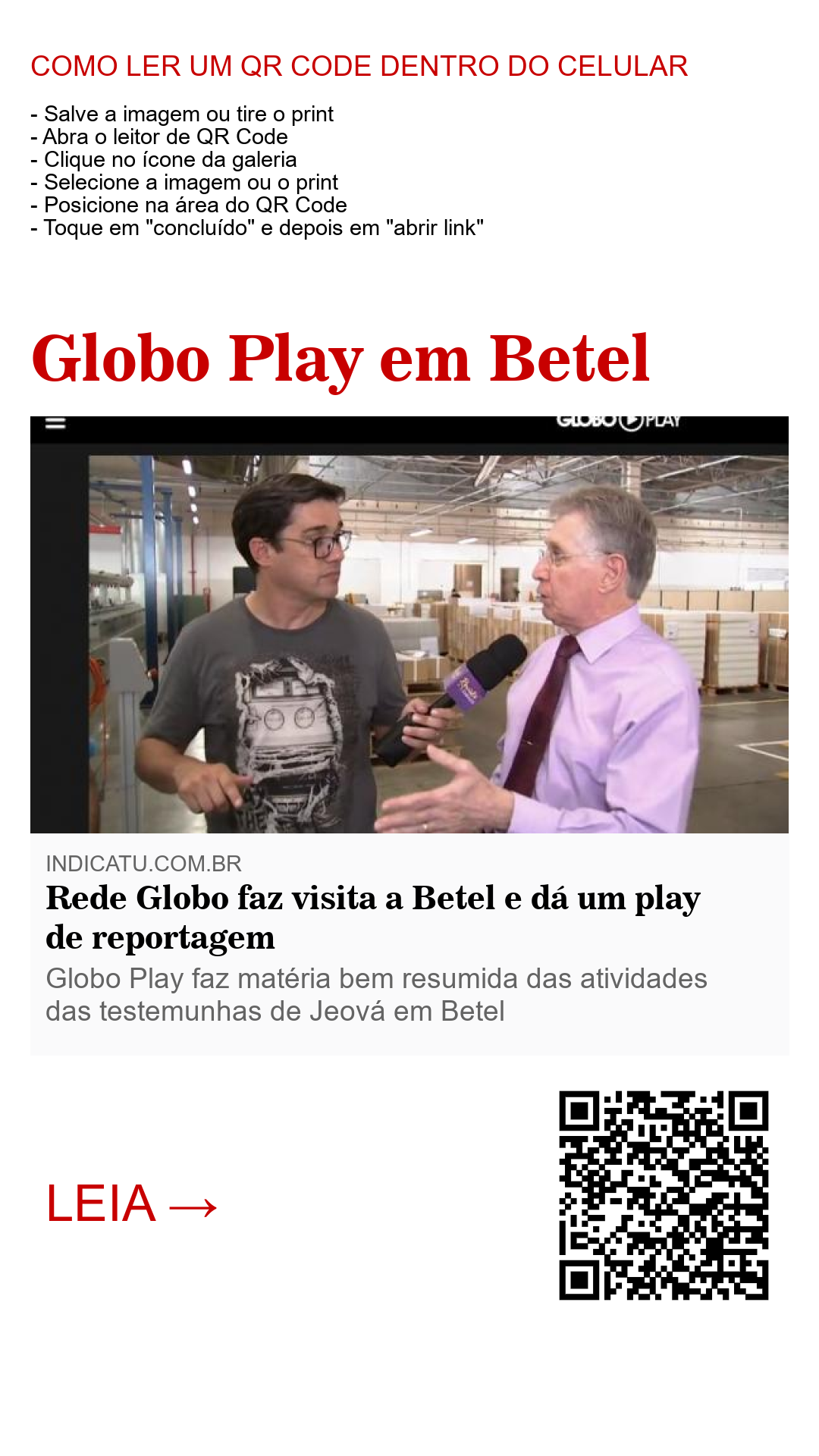A Rede Globo de televisão decidiu mostrar o que ela sabe fazer: Reportagem. Desta vez, os olhos do plin-plin miraram suas atenções no centro nervoso das linhas de produção da Torre de Vigia aqui no Brasil, mais conhecida como Betel.