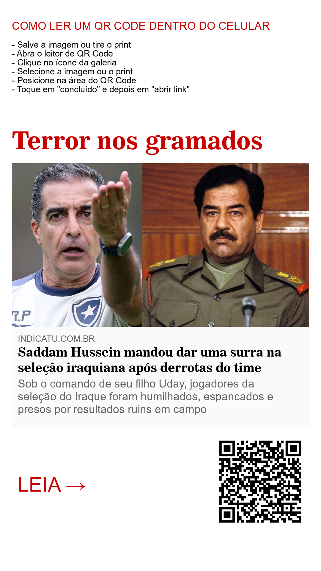 O caso da seleção iraquiana serve como exemplo extremo de como o poder absoluto corrompe até aquilo que deveria unir e emocionar. O futebol, nesse contexto, não foi competição, nem cultura, nem paixão — foi instrumento de medo e castigo.