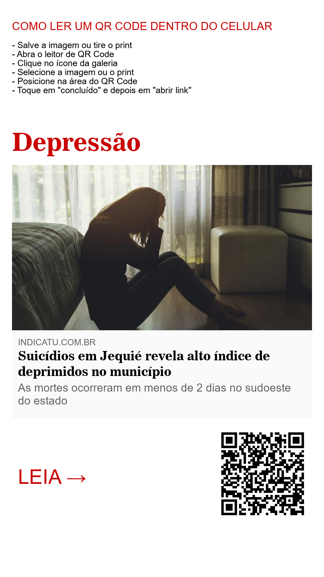 Três suicídios em menos de 2 dias! A semana passada foi a mais triste e assustadora dos primeiros 8 meses do ano de 2019 para os cerca de 185 mil habitantes da terra do sol, no sudoeste da Bahia. Três pessoas resolveram que a solução para o fim dos seus problemas seria pôr um termo à própria vida. A causadora dessas tragédias não poderia ser ninguém mais do que Ela, também conhecida como “O mal do século” – a depressão. O número de mortes em um curto espaço de tempo, levando-se em conta o número de habitantes de uma cidade considerada de médio porte, coloca o município baiano entre as cidades brasileiras com um alto índice de pessoas deprimidas com depressão do tipo “grave”, aquela em que o indivíduo “dar um basta” à própria vida. As mortes citadas neste artigo ocorreram entre os dias 20 e 21 de agosto em Jequié, sendo a primeira vítima a ex- vice-prefeita da cidade. Há 15 dias, um pai de família também morreu de causas parecidas tendo um infarte fulminante gerado por provocações do filho usuário de drogas, levando-o a óbito.