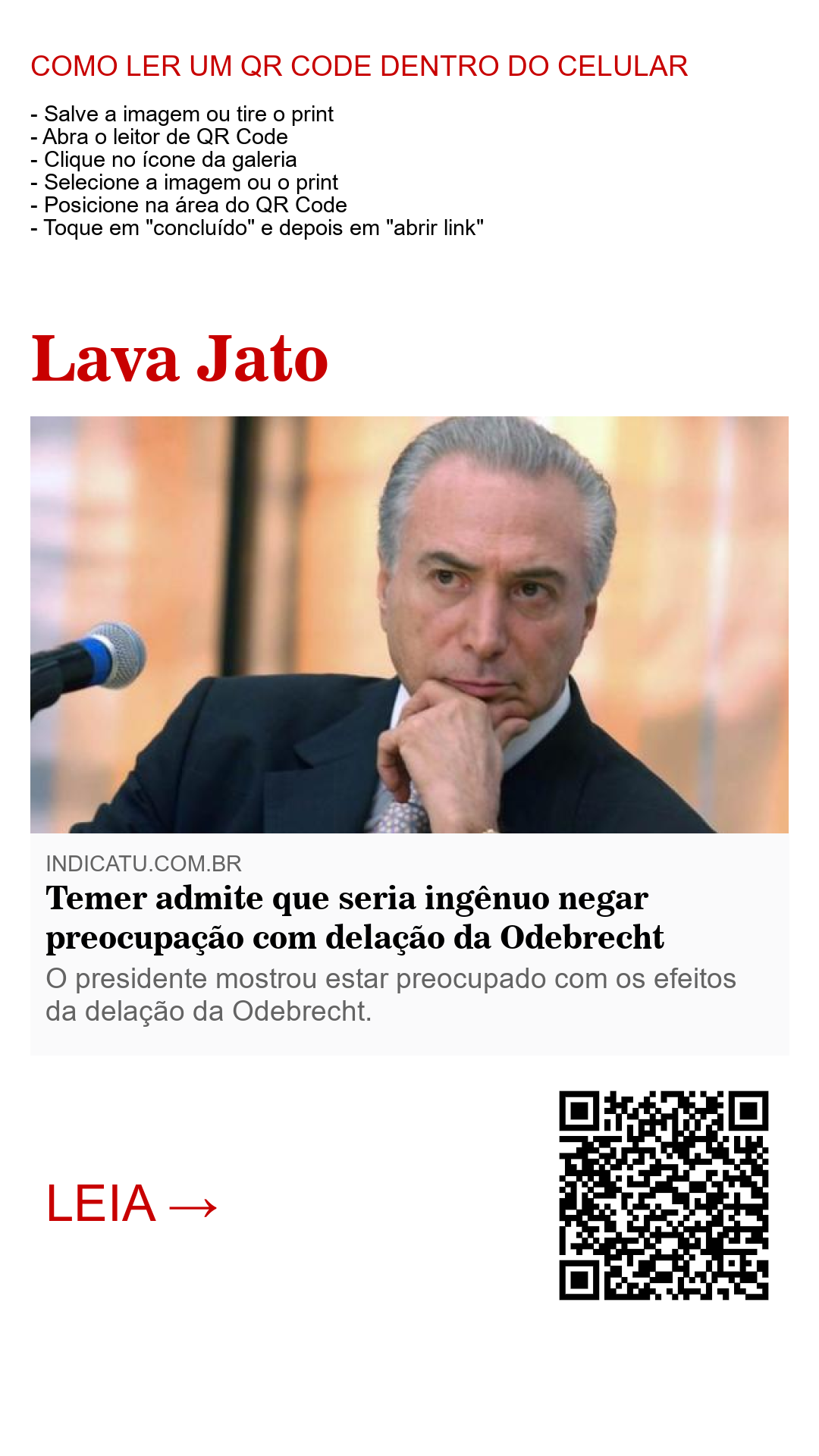 O presidente mostrou estar preocupado com os efeitos da delação da Odebrecht.