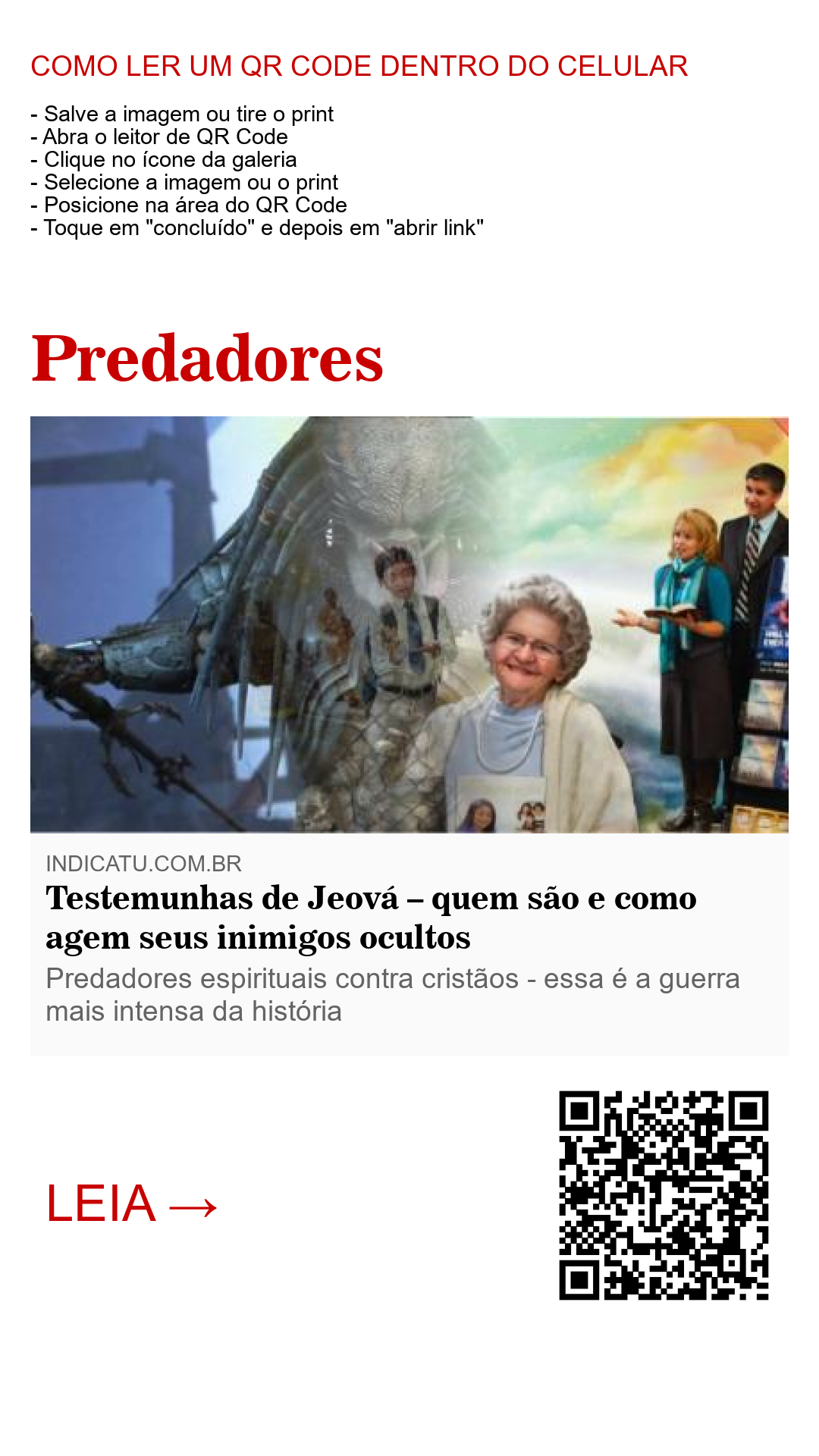 Esta é uma guerra real entre seres reais com armas que matam de verdade. Então não vacile. Vencer uma guerra não é tão fácil quanto entrar nela. Mas, com ajuda, atenção, coragem, proteção e persistência, vai ser possível escapar e viver para contar a vitória do bom combate travado contra esses seres implacáveis. Naquele tempo eles já estarão presos depois de terem caído numa armadilha maior do que aquelas que eles, durante anos, prepararam para você.