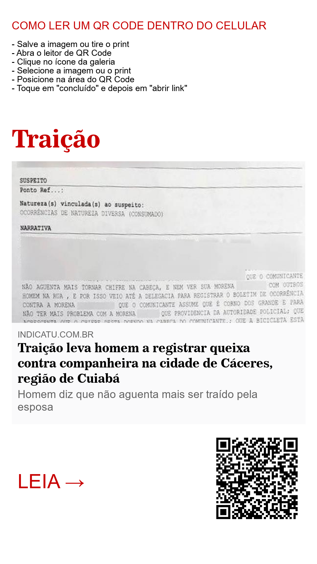Traição leva homem a registrar queixa contra companheira na cidade de Cáceres, região de Cuiabá